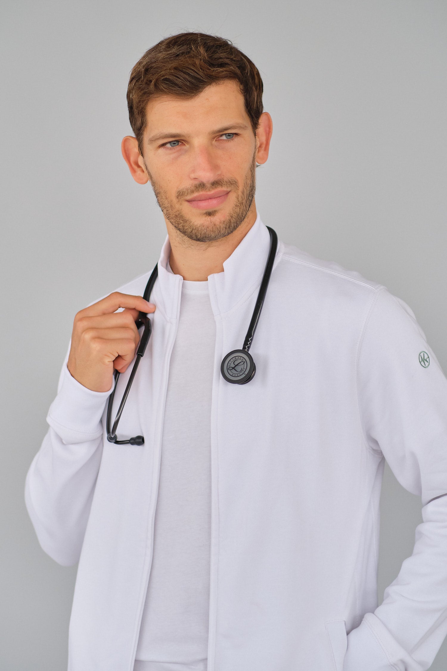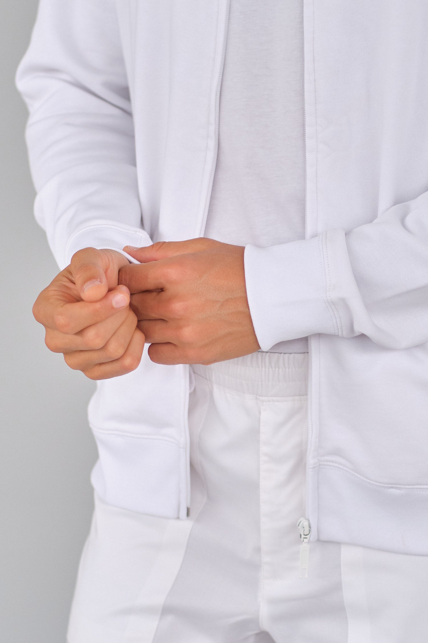Giacca a manica lunga con zip, è la scelta perfetta per chi cerca comfort e versatilità nel proprio abbigliamento da lavoro. Realizzata in un morbidissimo tessuto di 80% cotone organico di alta qualità e 20% poliestere riciclato, garantisce una sensazione di morbidezza sulla pelle ed è perfetta per essere indossata sia in ambienti interni che esterni, adattandosi a diverse situazioni lavorative
