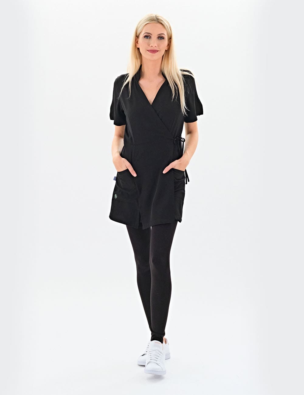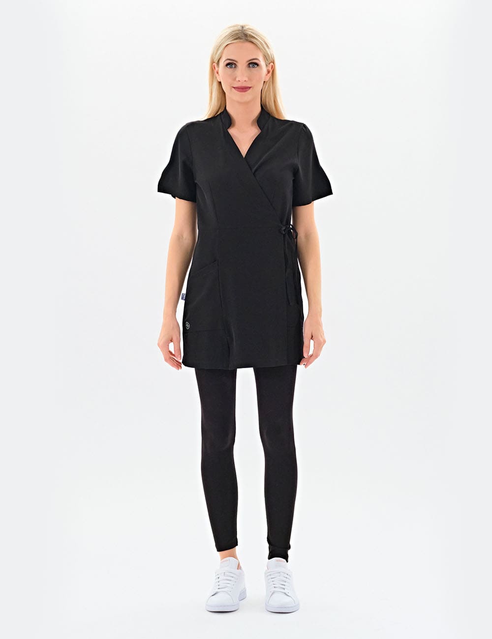 Überkreuzte Öffnung vorne mit Schnürsenkeln verstellbar, um es in der Taille zu binden