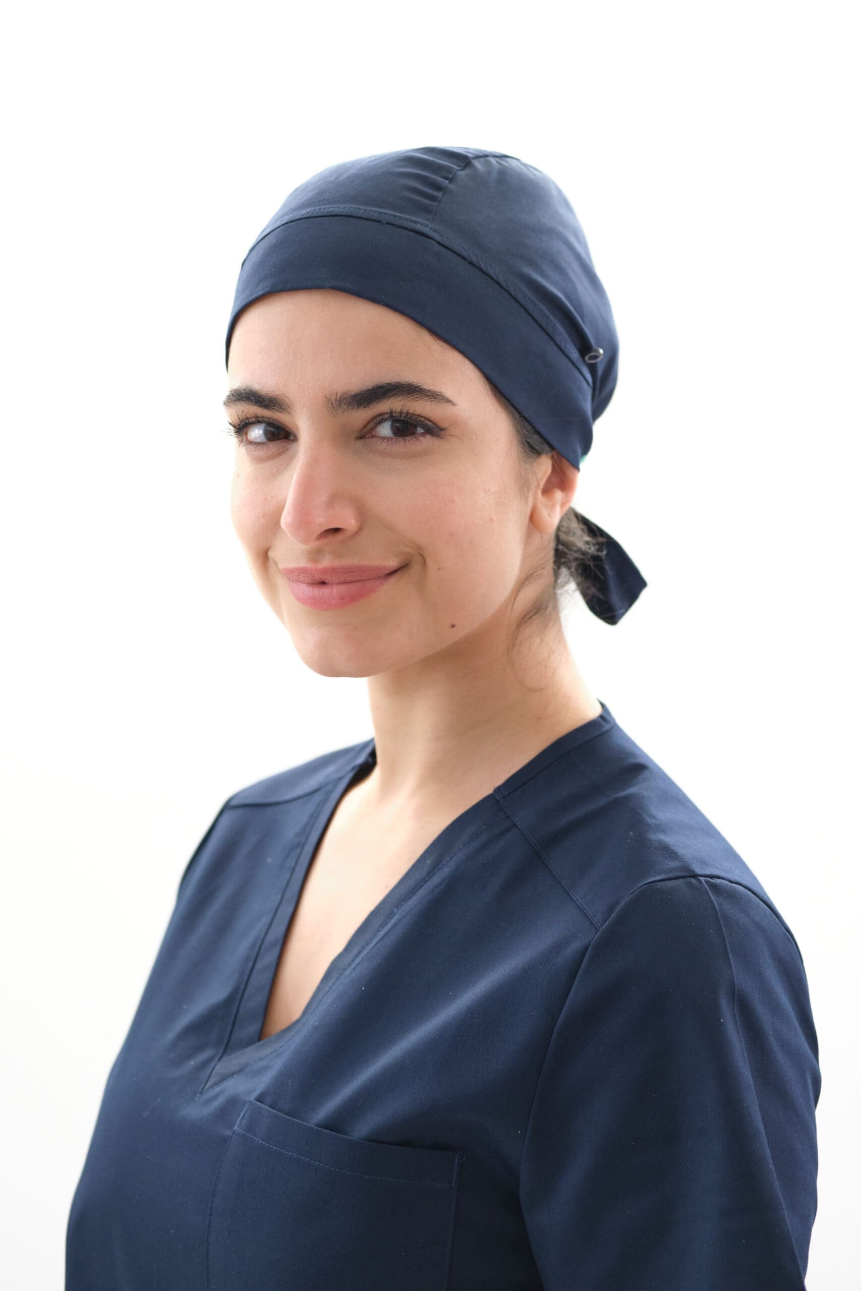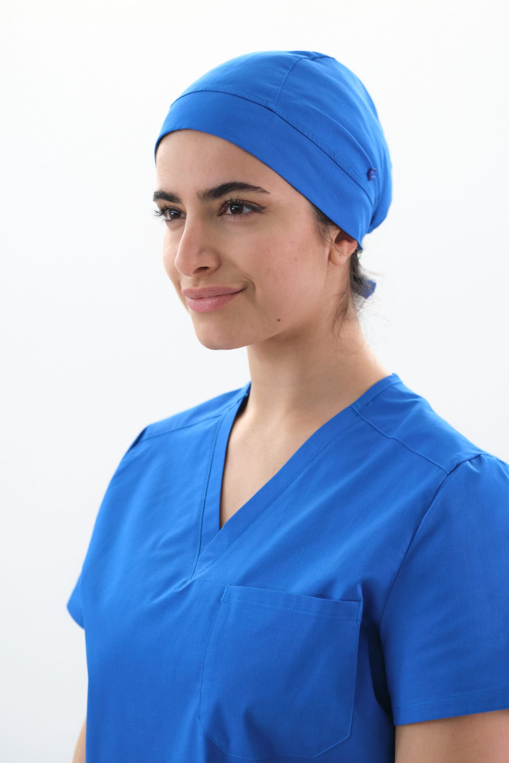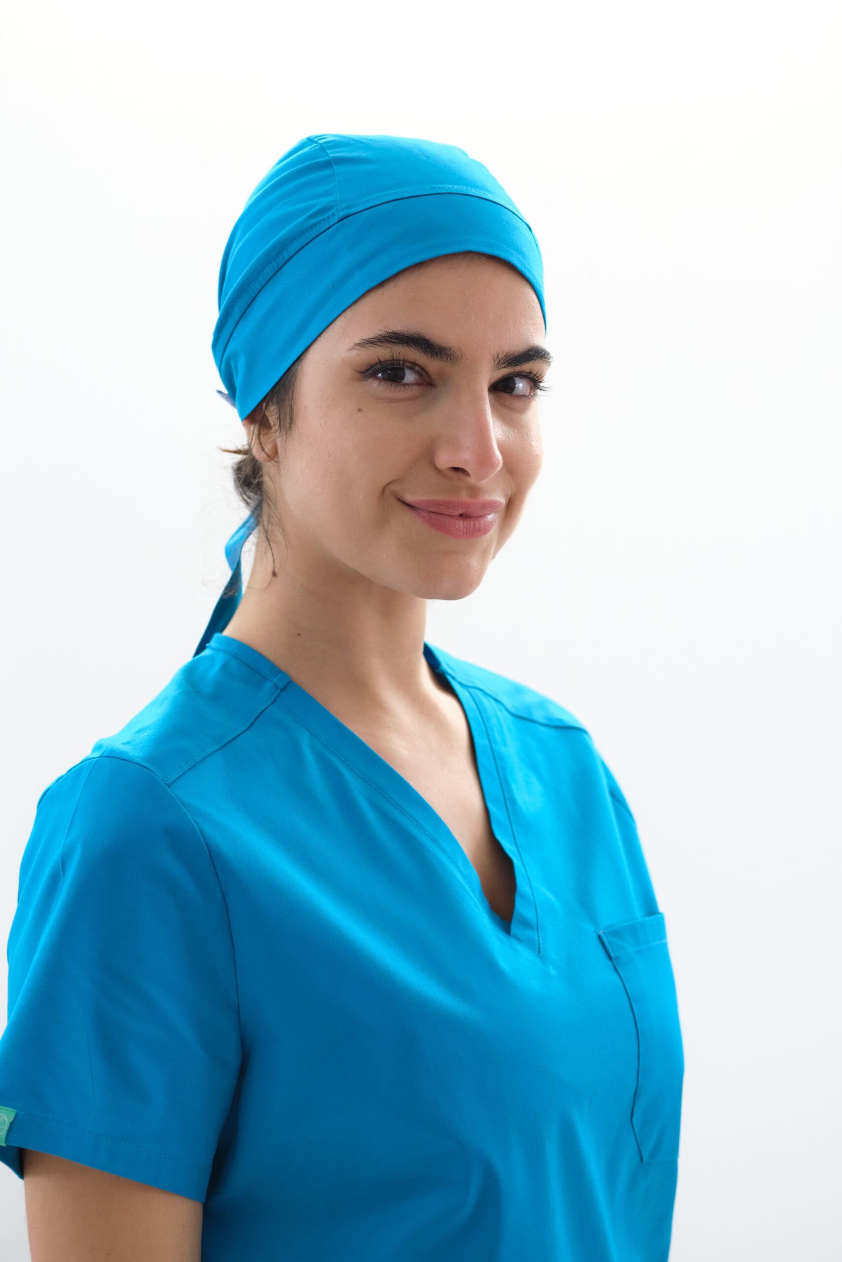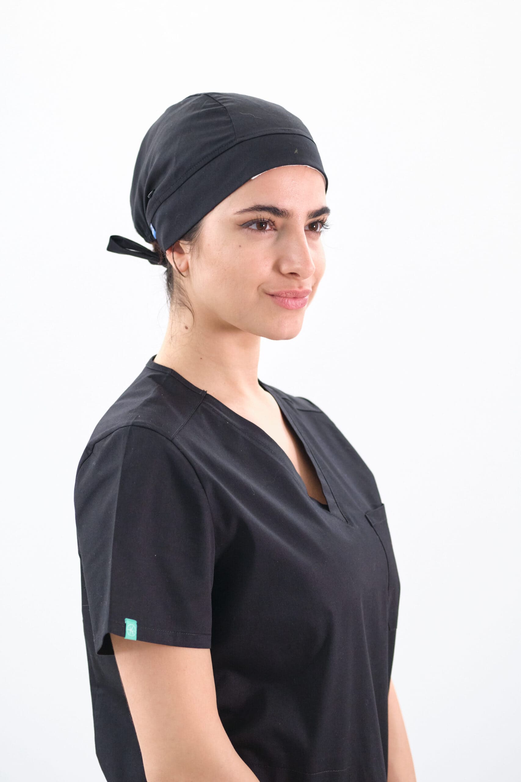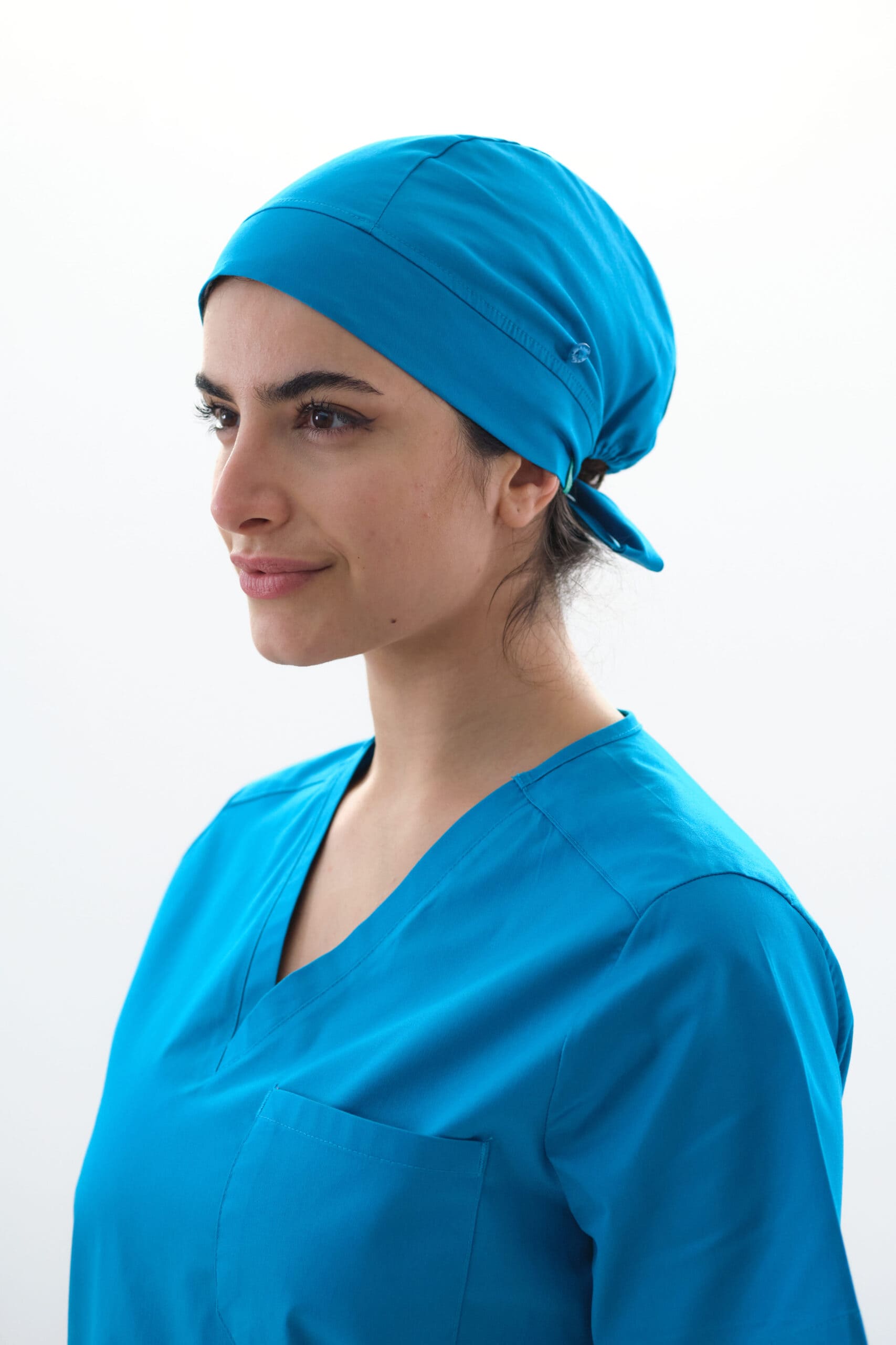 Praktische medizinische Mütze aus hochwertigem Stretch-Baumwollmischgewebe, extrem frisch, langlebig und atmungsaktiv. Dank des Gummizugs auf der Rückseite und der verstellbaren Schnürsenkel lässt er sich ganz einfach an Ihre Bedürfnisse anpassen
