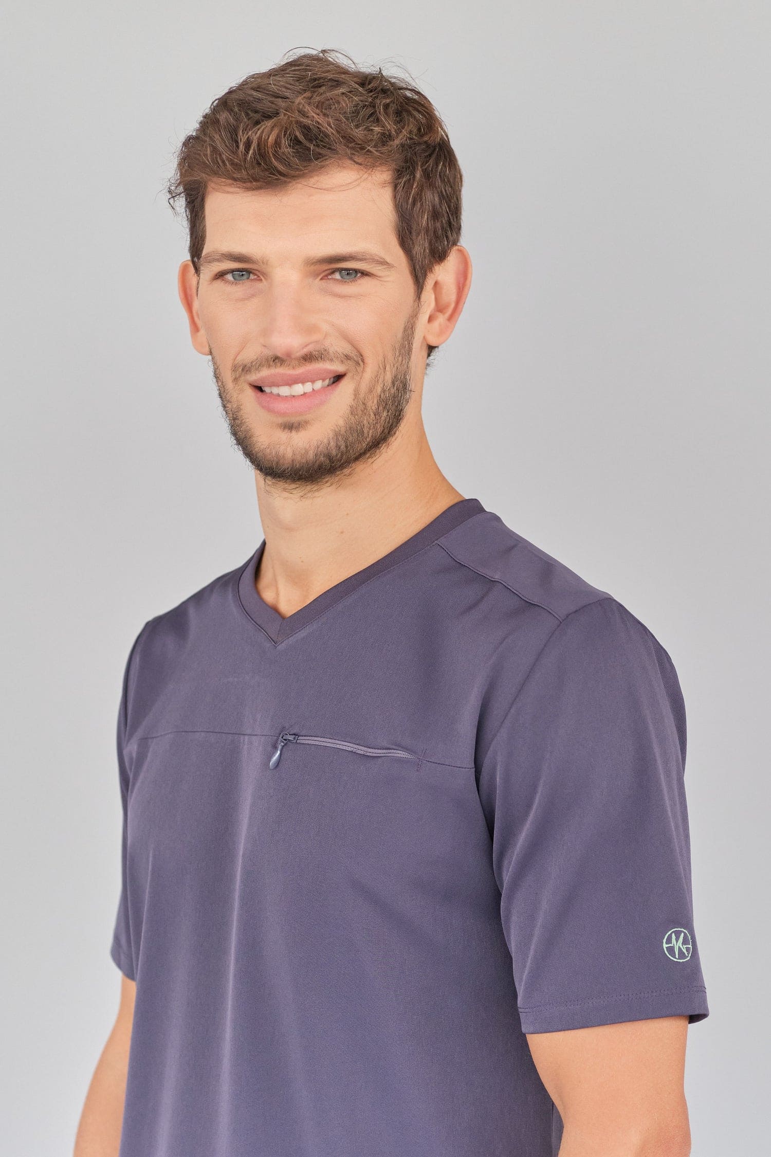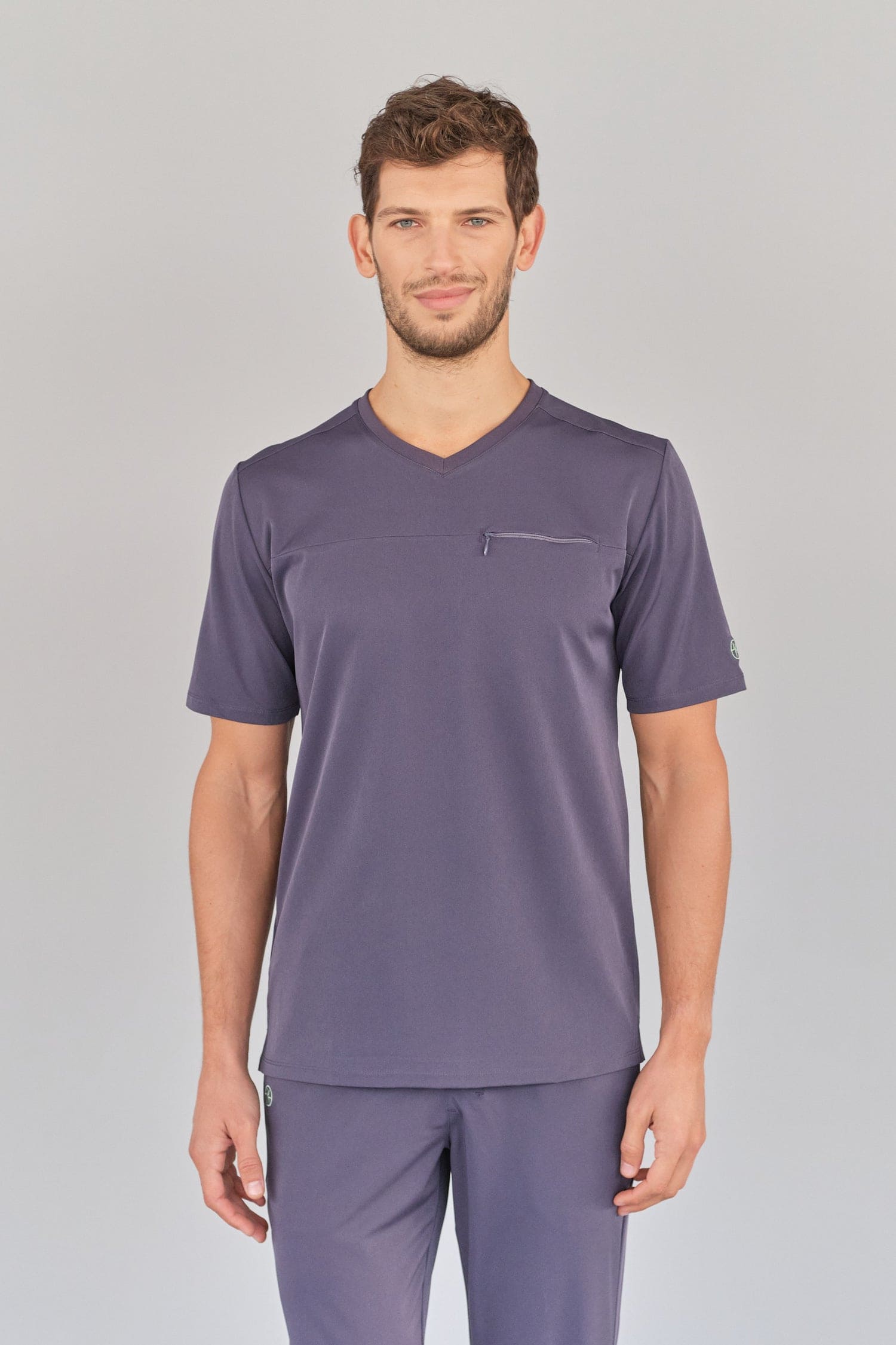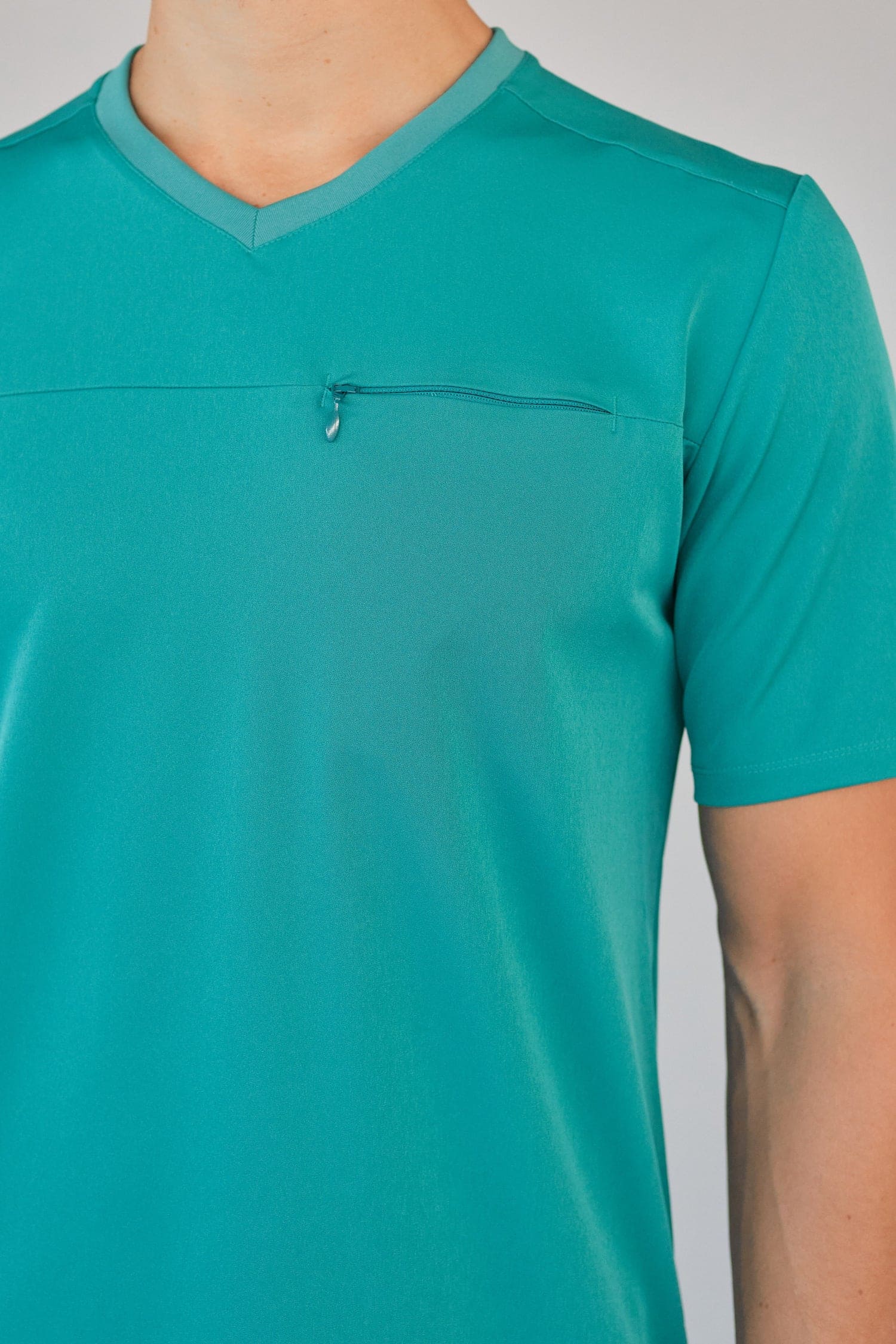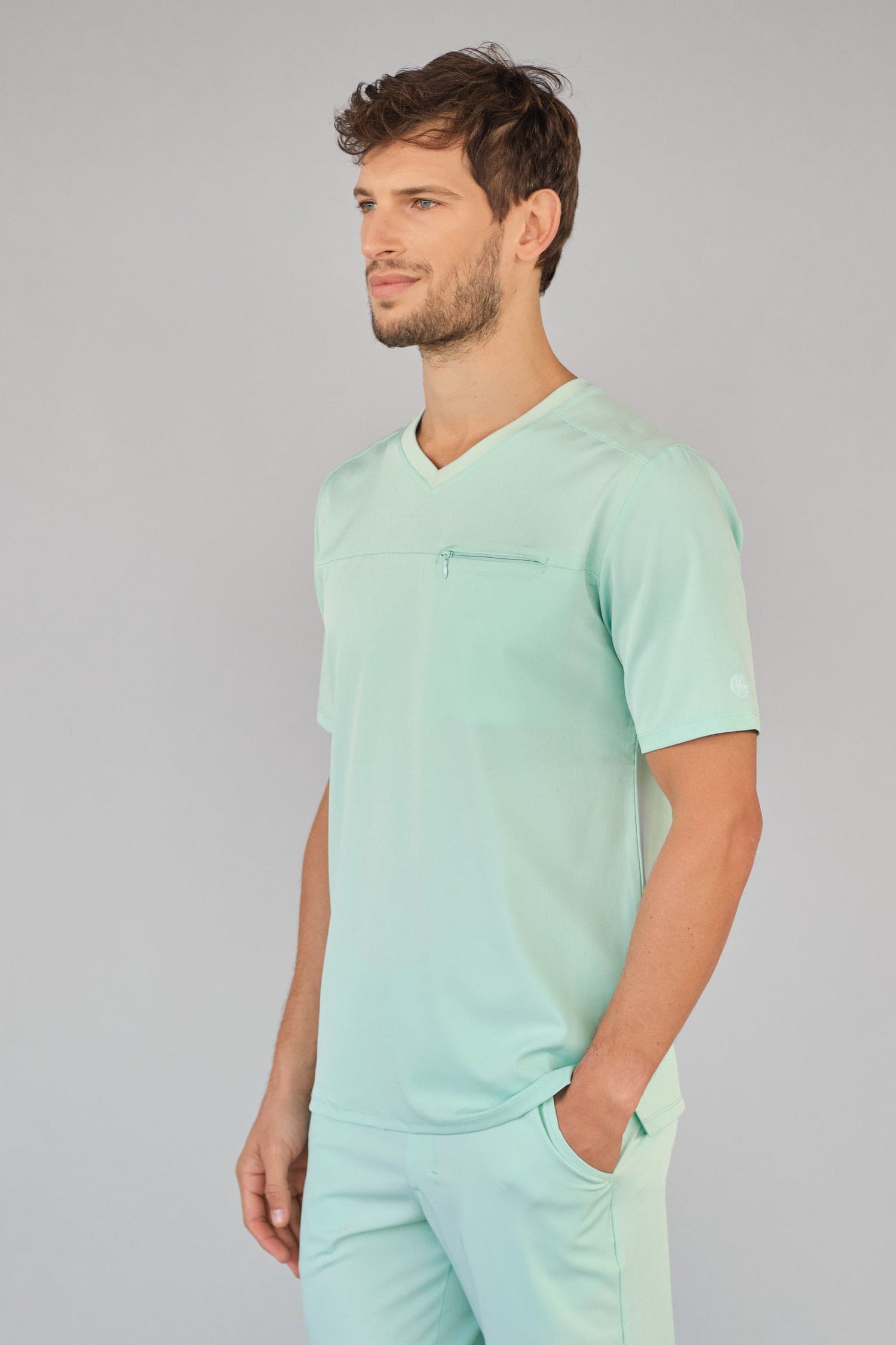Kurzärmelige Herrentunika aus Mikrofaserstoff. Es hat einen taillierten und modernen Stil. Der gerippte V-Ausschnitt bietet mehr Schutz beim Arbeiten, während Sie in der Brusttasche mit Reißverschluss Ihre wichtigsten Dinge verstauen können. Der weiche und elastische Stoff garantiert Bewegungsfreiheit und ein angenehmes Tragegefühl, während die Teflon®-Behandlung für wasserabweisenden und schmutzabweisenden Schutz sorgt