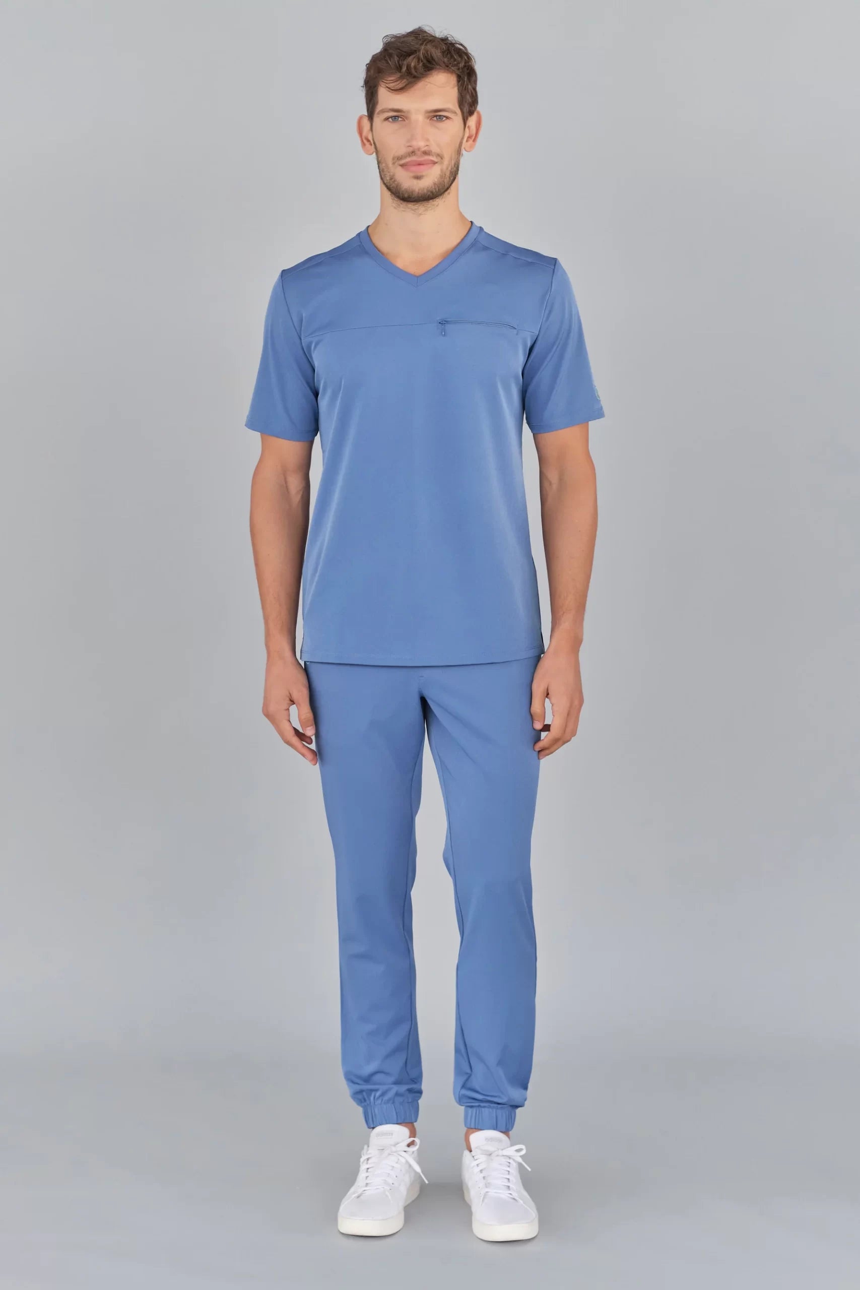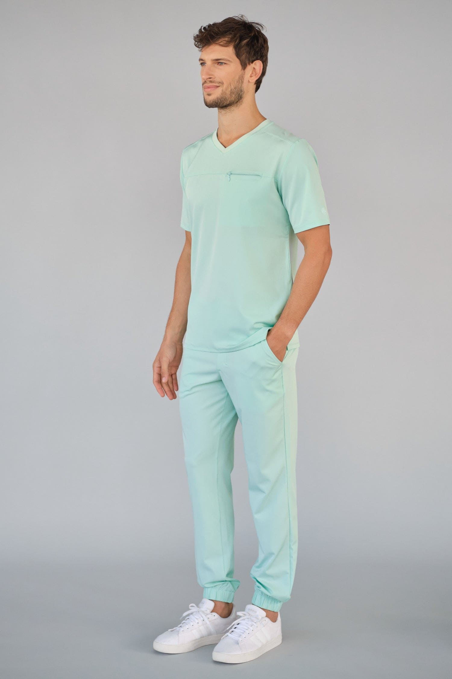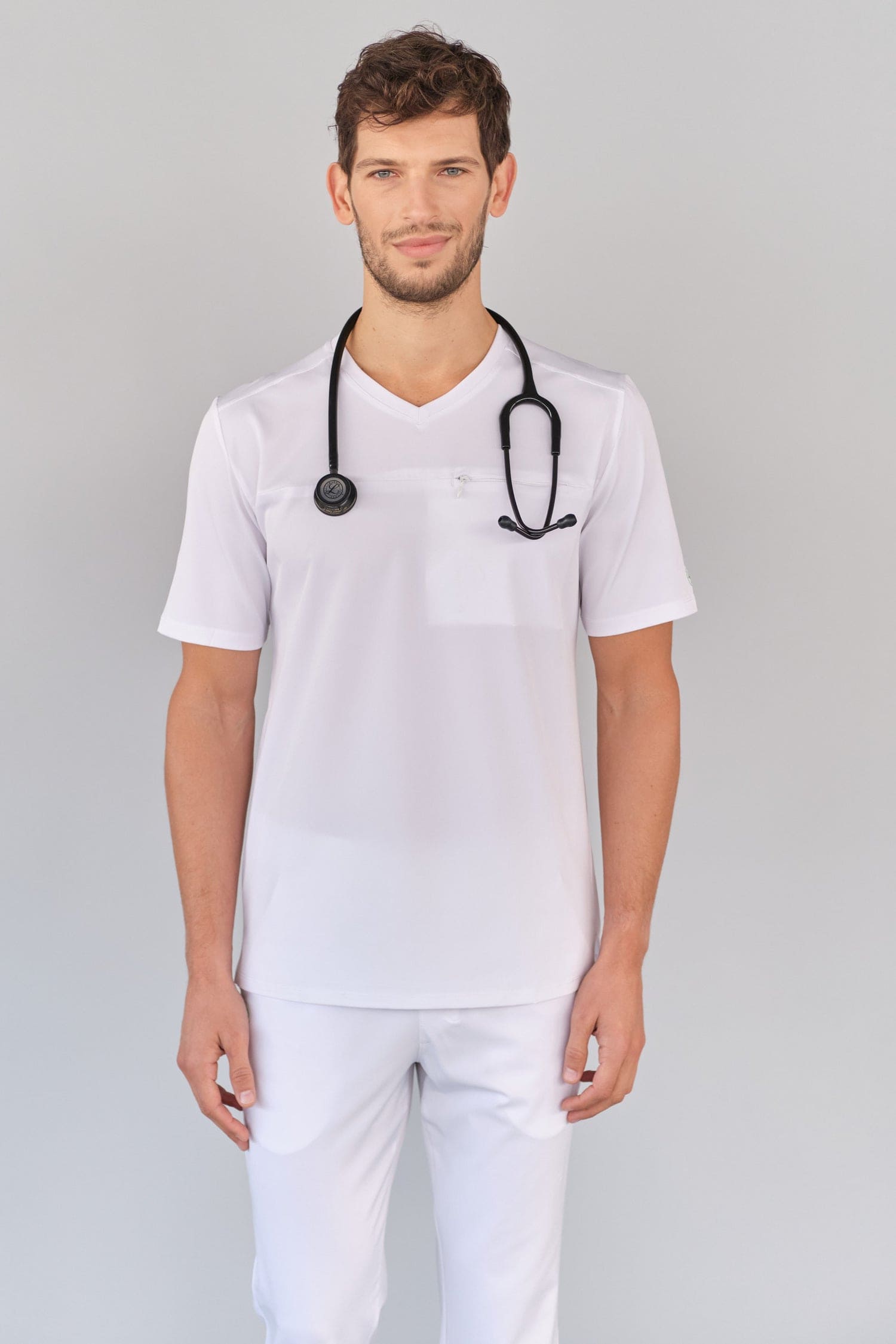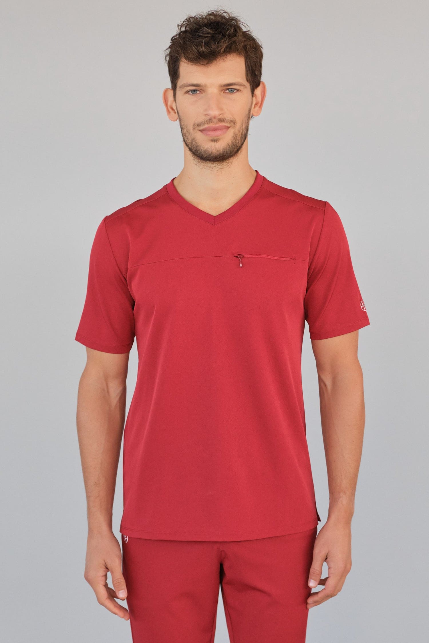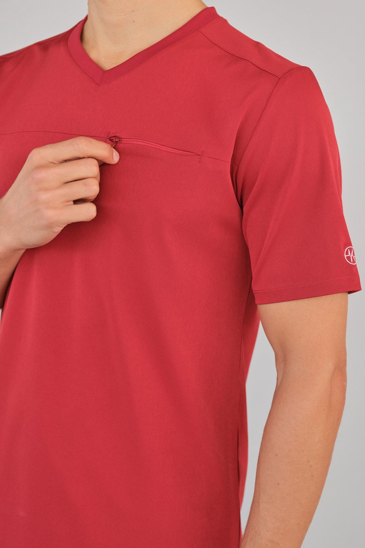 Kurzärmelige Herrentunika aus Mikrofaserstoff. Es hat einen taillierten und modernen Stil. Der gerippte V-Ausschnitt bietet mehr Schutz beim Arbeiten, während Sie in der Brusttasche mit Reißverschluss Ihre wichtigsten Dinge verstauen können. Der weiche und elastische Stoff garantiert Bewegungsfreiheit und ein angenehmes Tragegefühl, während die Teflon®-Behandlung für wasserabweisenden und schmutzabweisenden Schutz sorgt