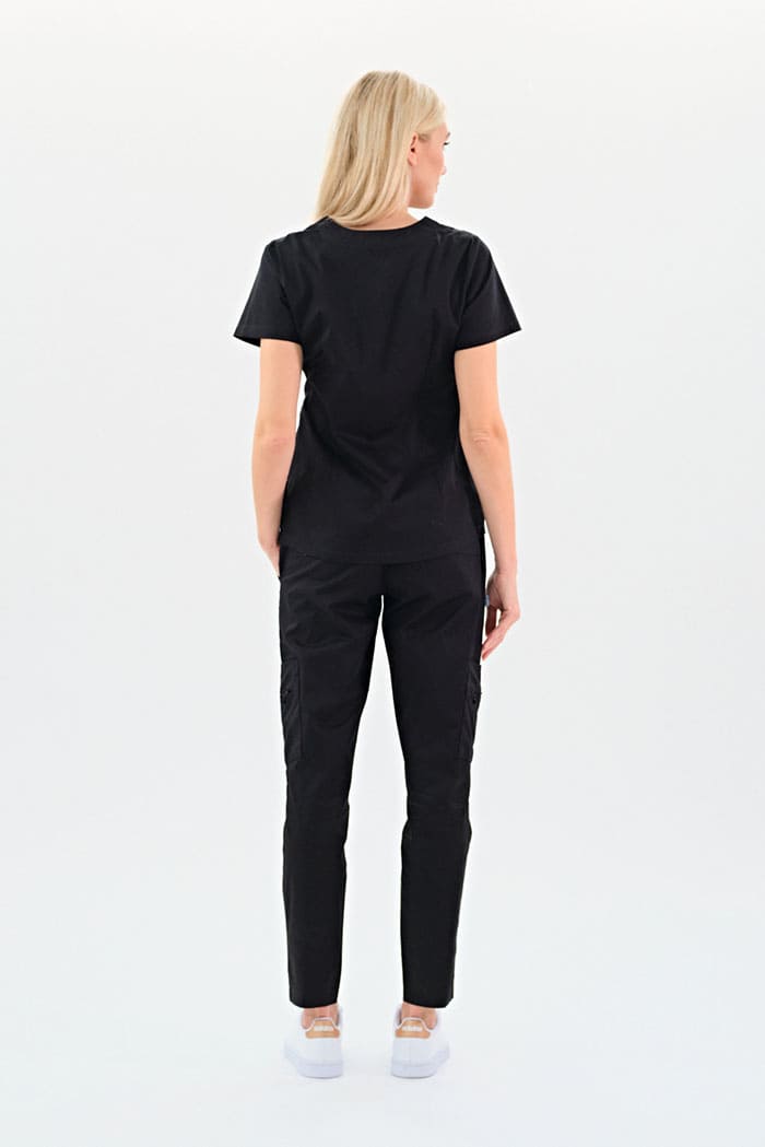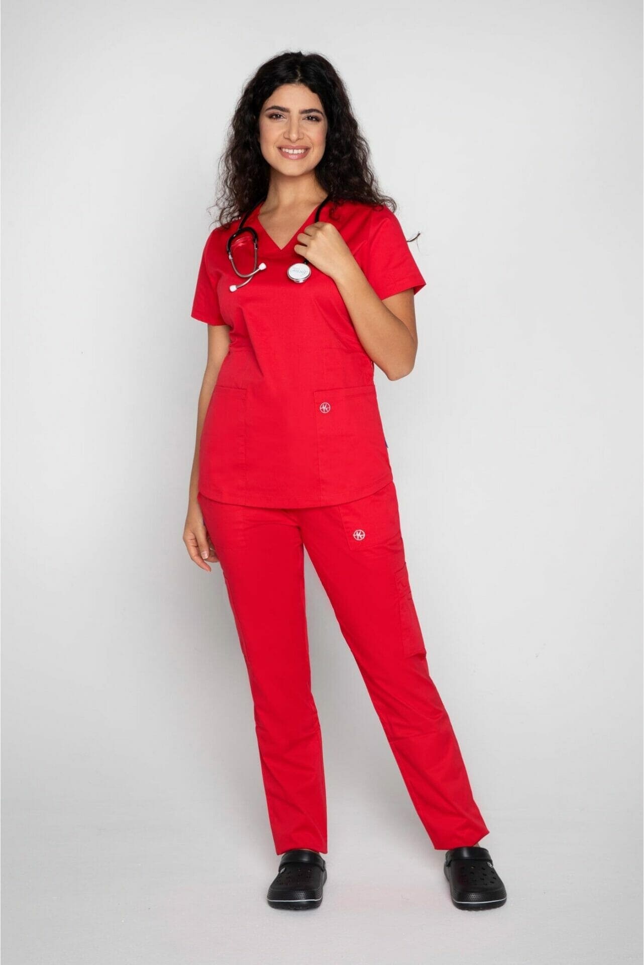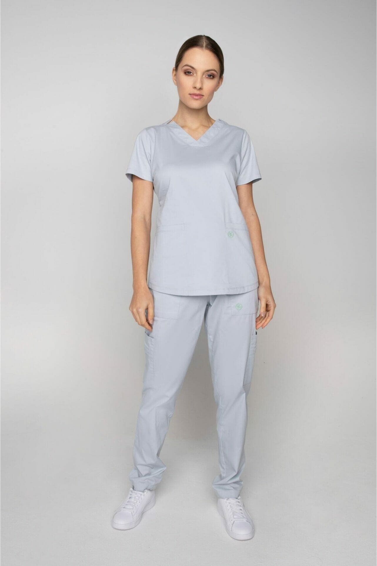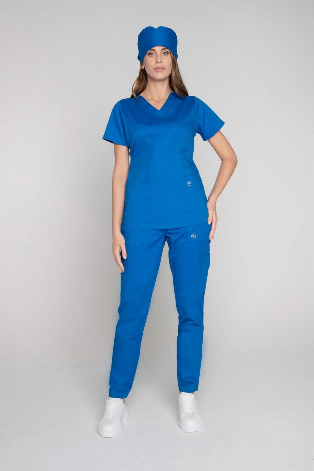 Damen-Tunika mit kurzen Ärmeln und V-Ausschnitt aus hochwertigem Stretch-Baumwollmischgewebe, extrem frisch, langlebig und atmungsaktiv. Es ist eines unserer meistverkauften Modelle mit praktischen Taschen und einer engen, modernen Passform