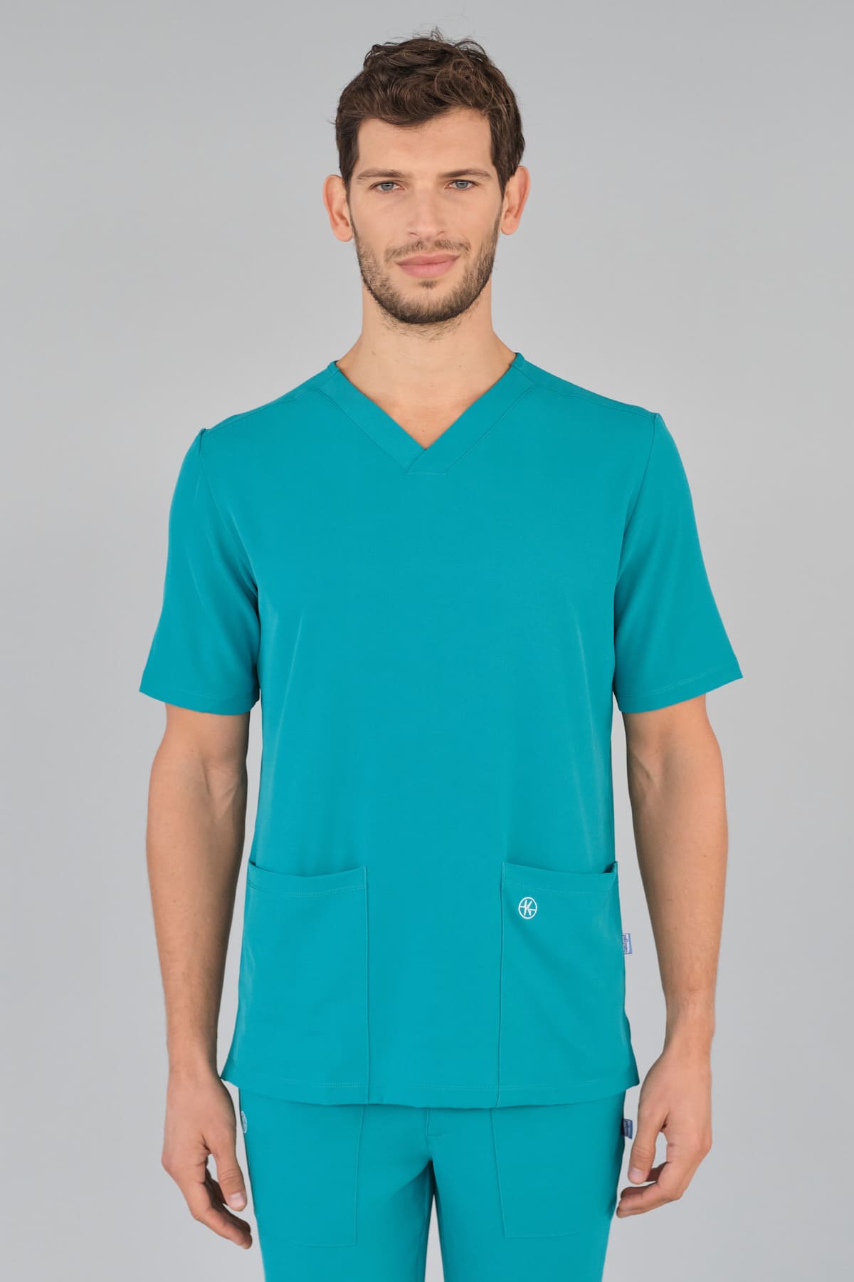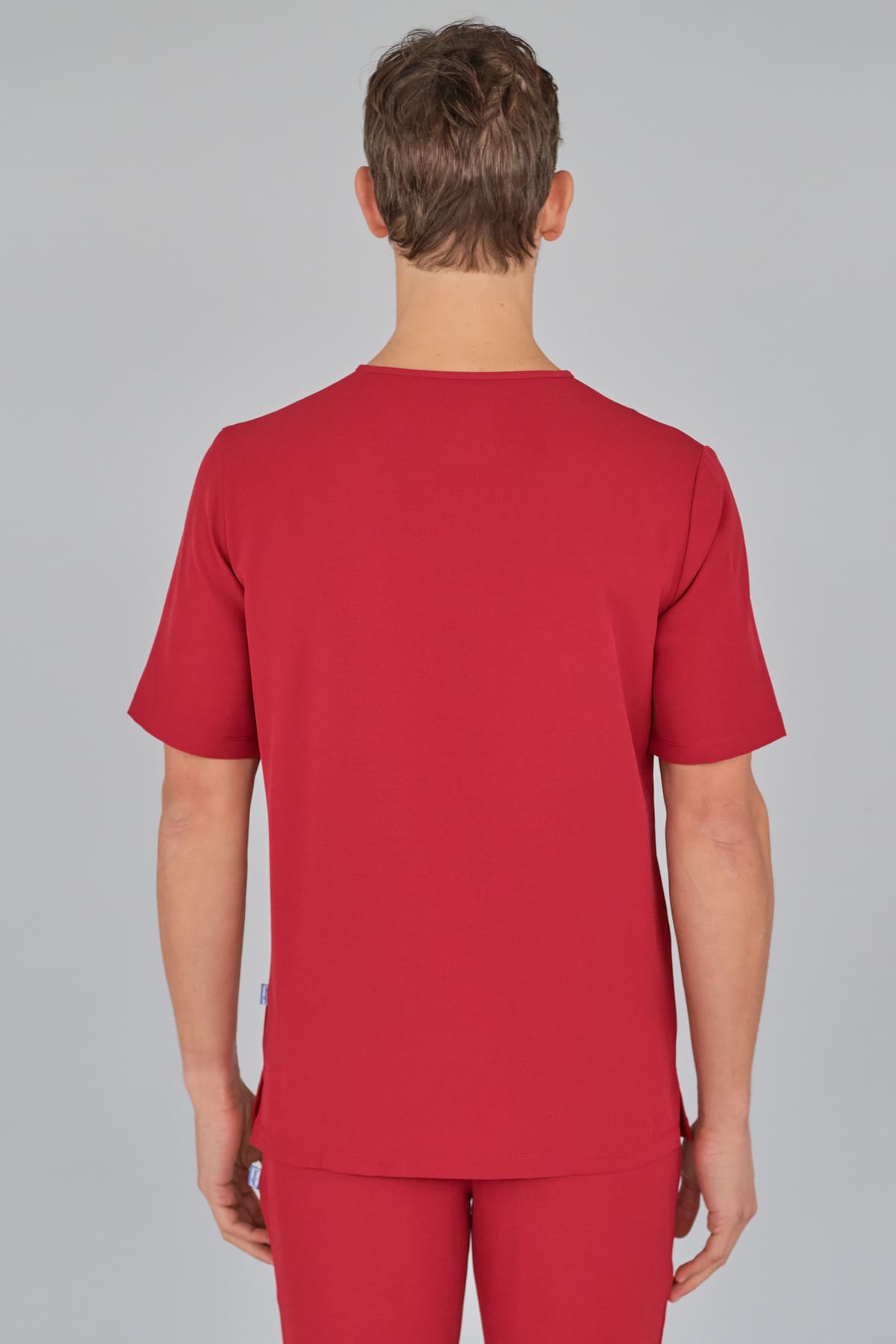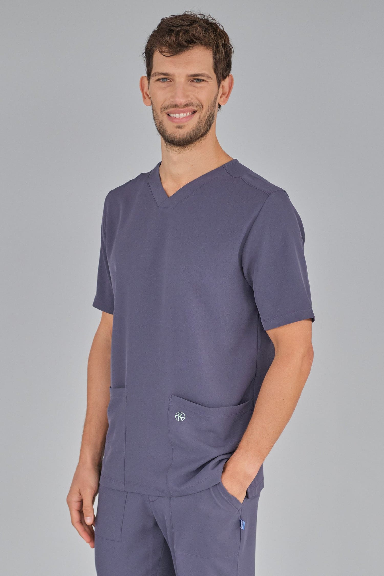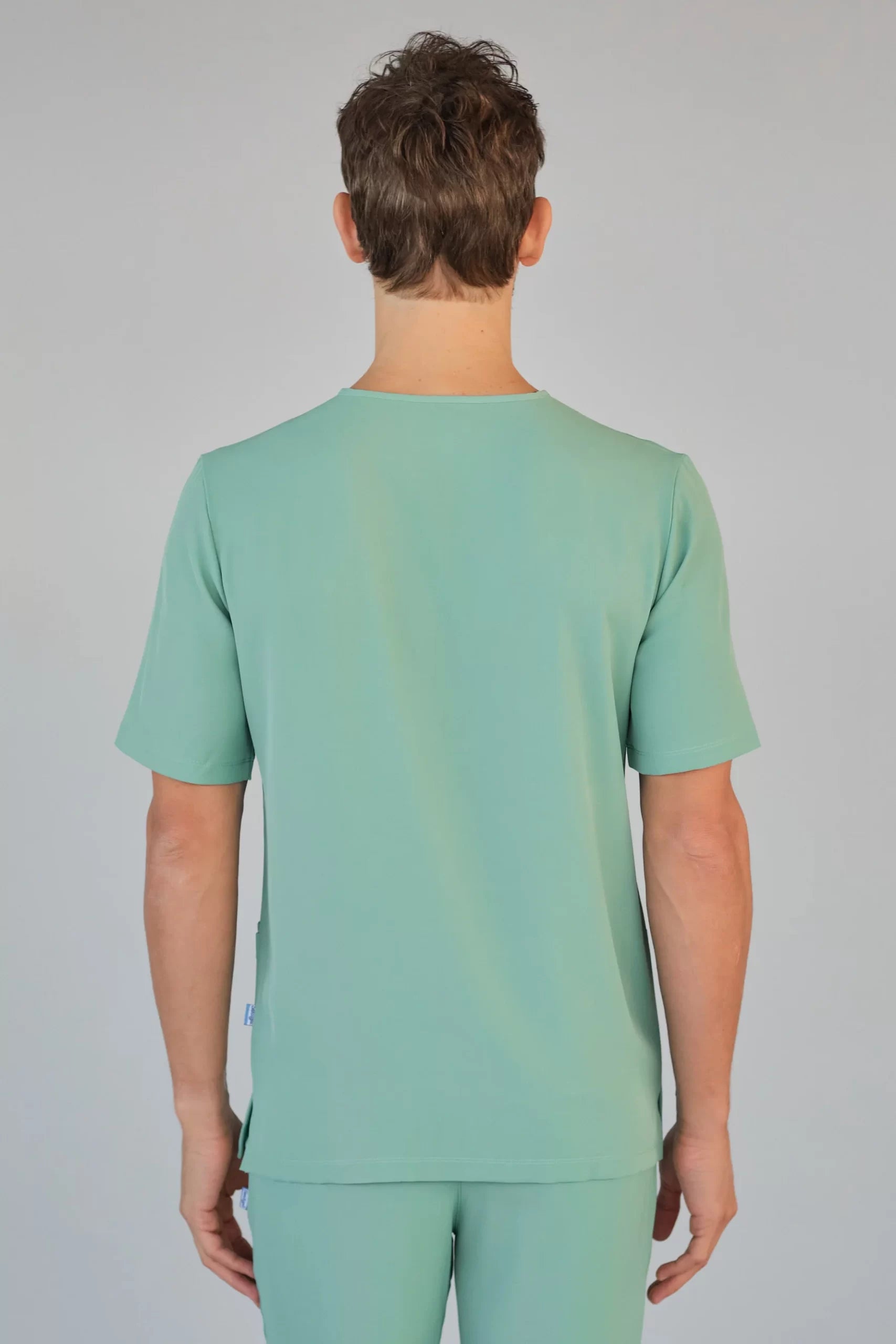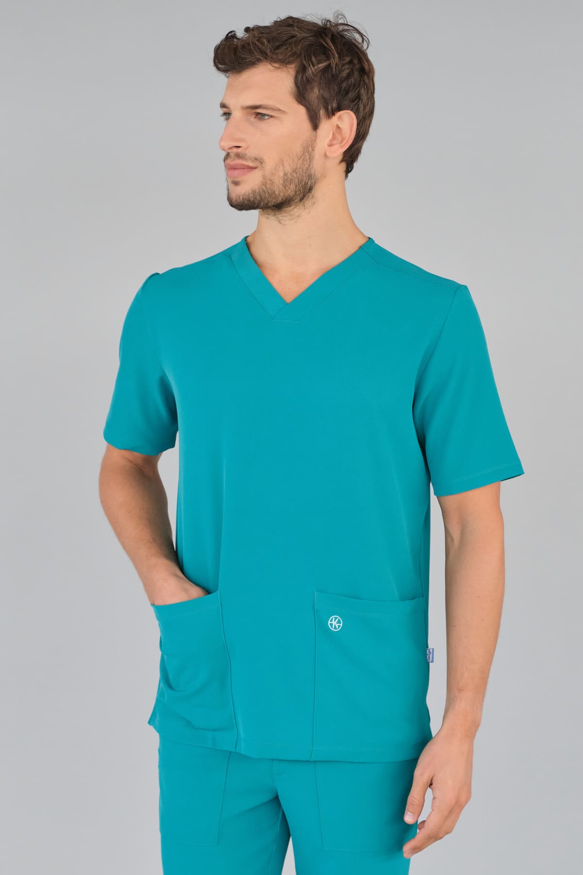 Kurzärmlige Herren-Tunika mit V-Ausschnitt aus innovativem 4-Wege-Stretch-Crêpe-Gewebe. Es ist unser Flaggschiff, das Komfort, Eleganz und Bewegungsfreiheit vereint. Der fließende, dehnbare und atmungsaktive Stoff garantiert maximalen Komfort.
