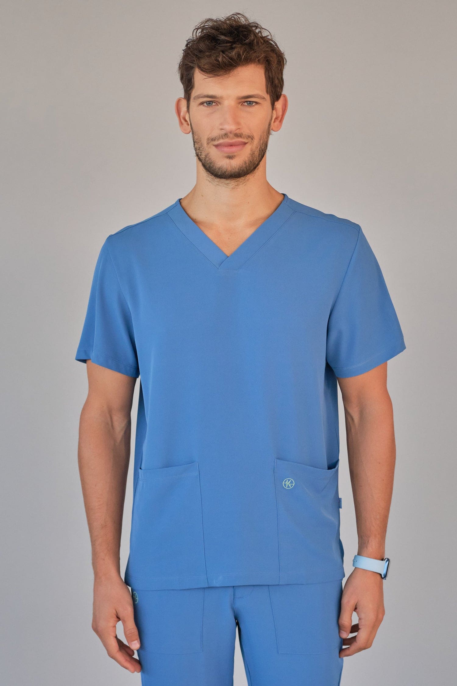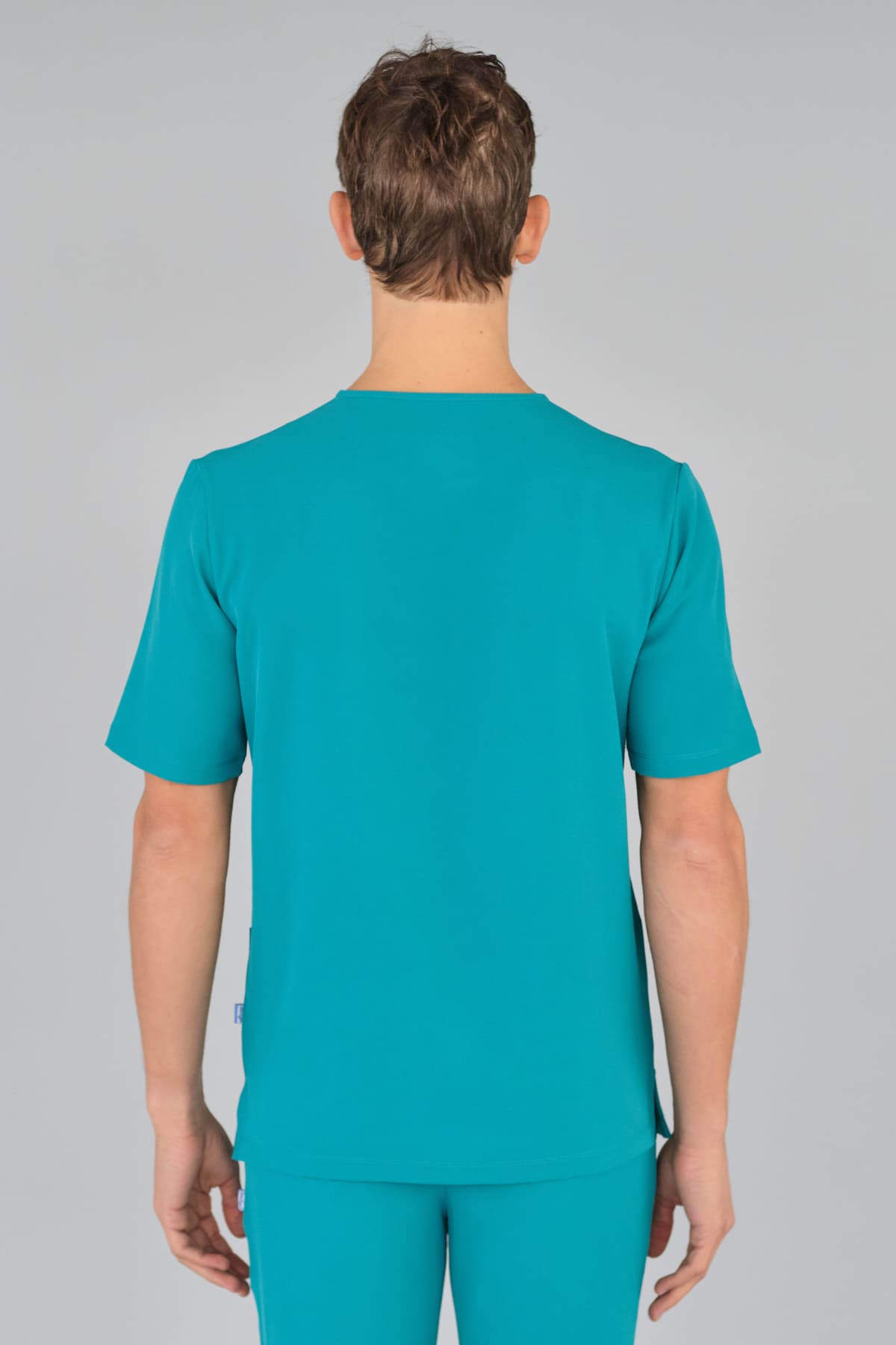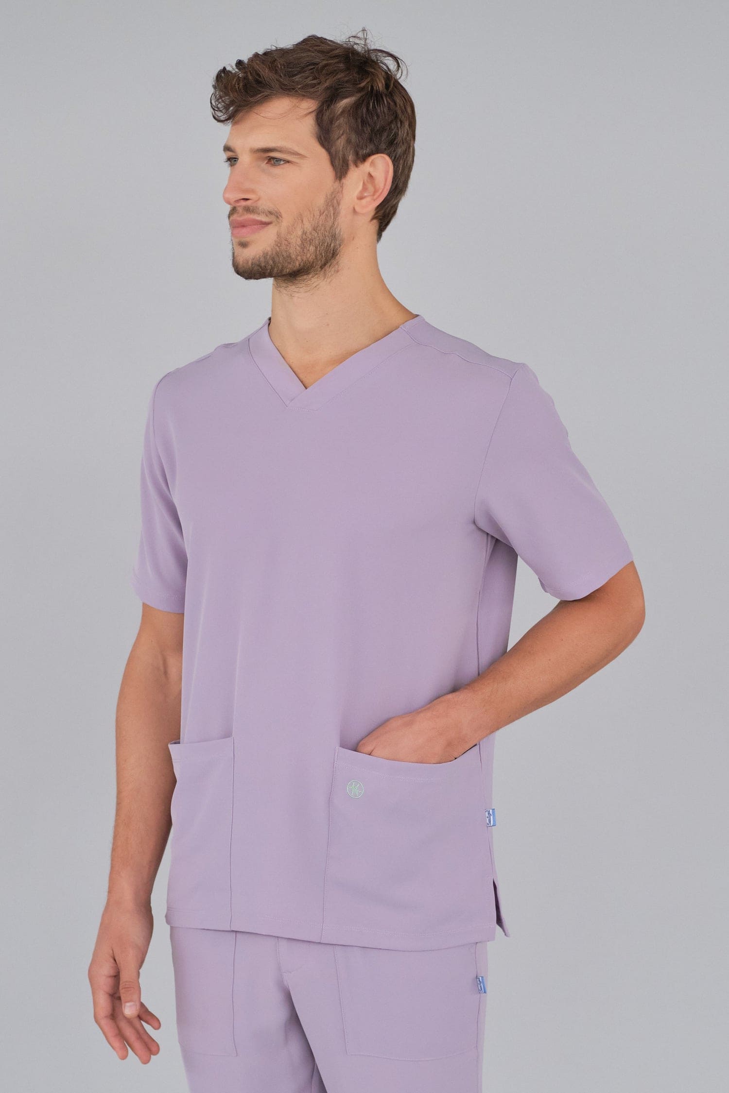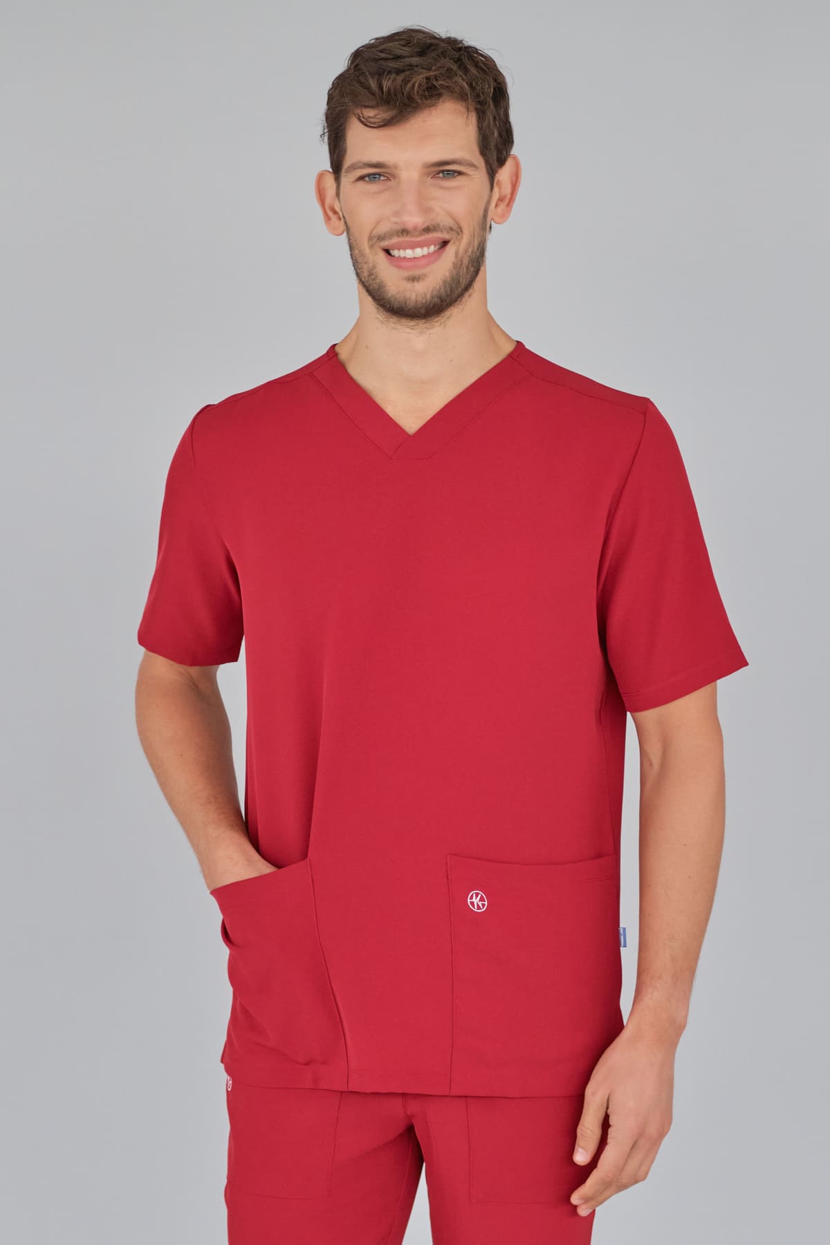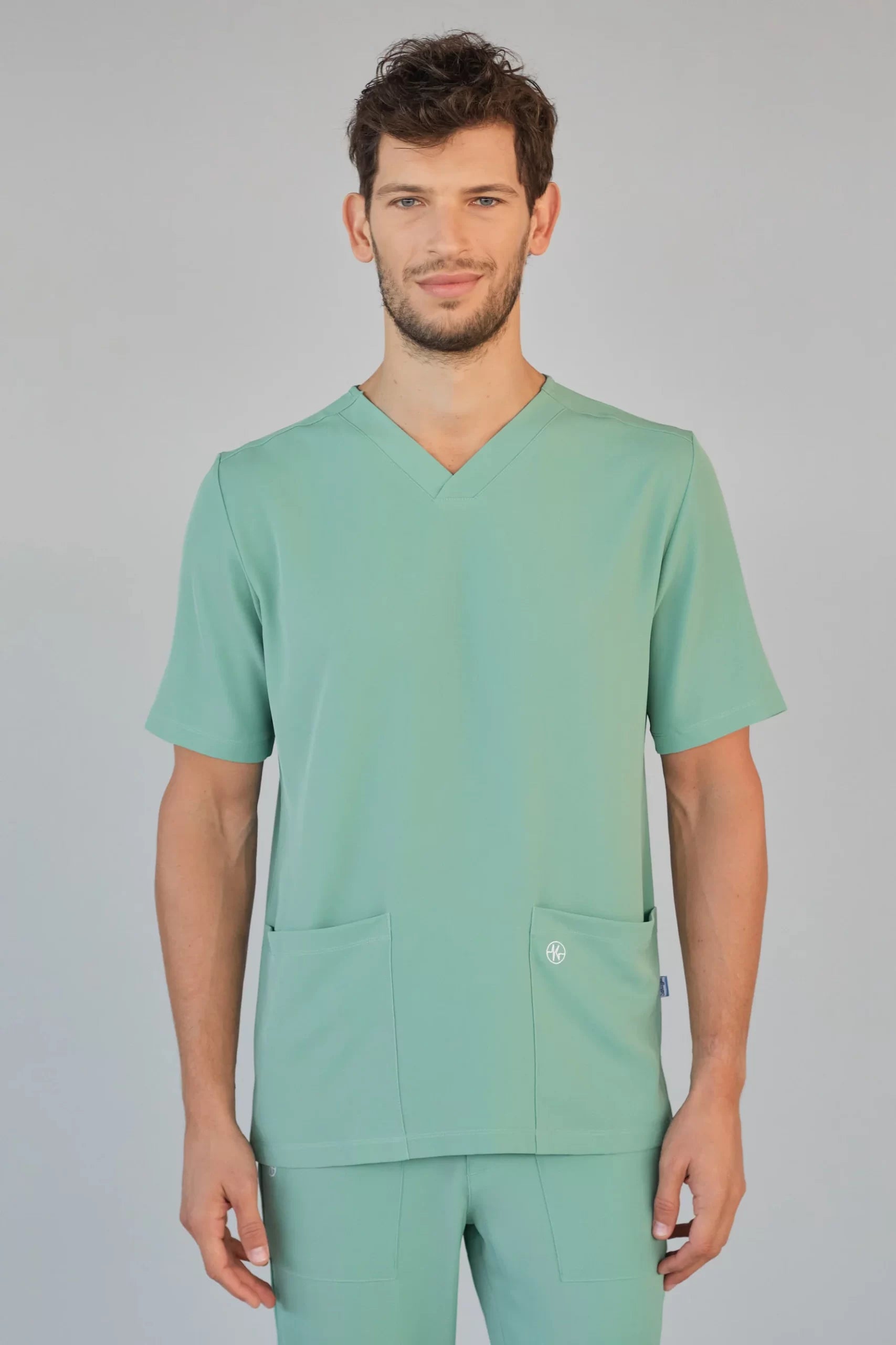 Kurzärmlige Herren-Tunika mit V-Ausschnitt aus innovativem 4-Wege-Stretch-Crêpe-Gewebe. Es ist unser Flaggschiff, das Komfort, Eleganz und Bewegungsfreiheit vereint. Der fließende, dehnbare und atmungsaktive Stoff garantiert maximalen Komfort.