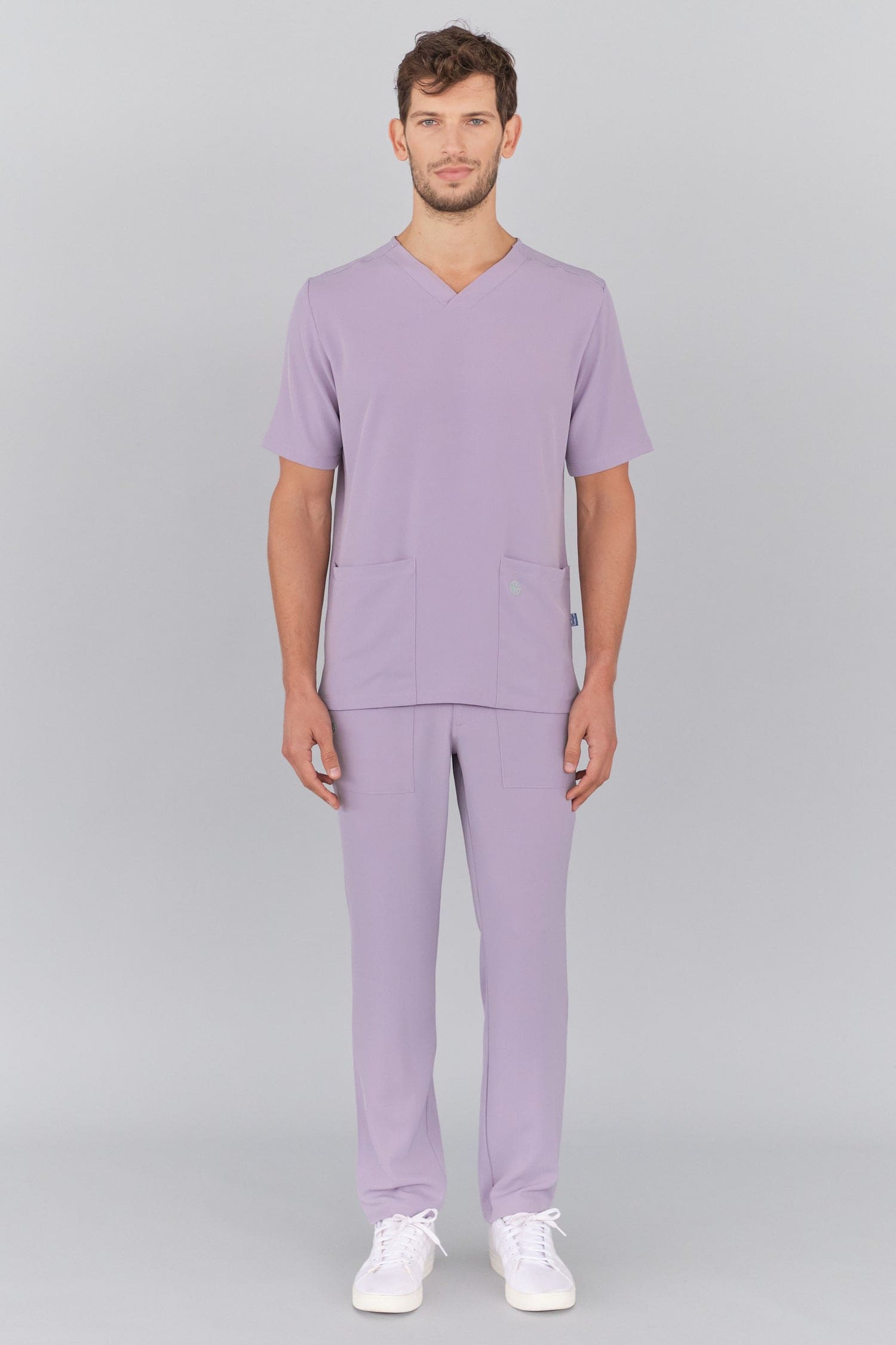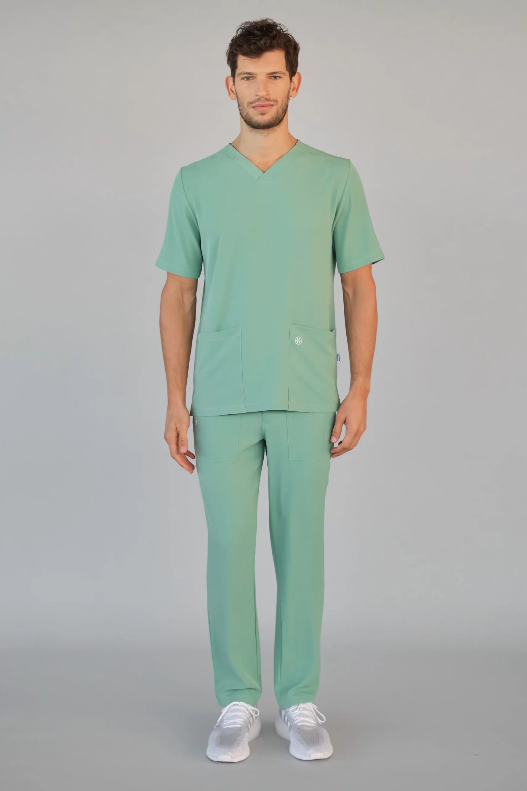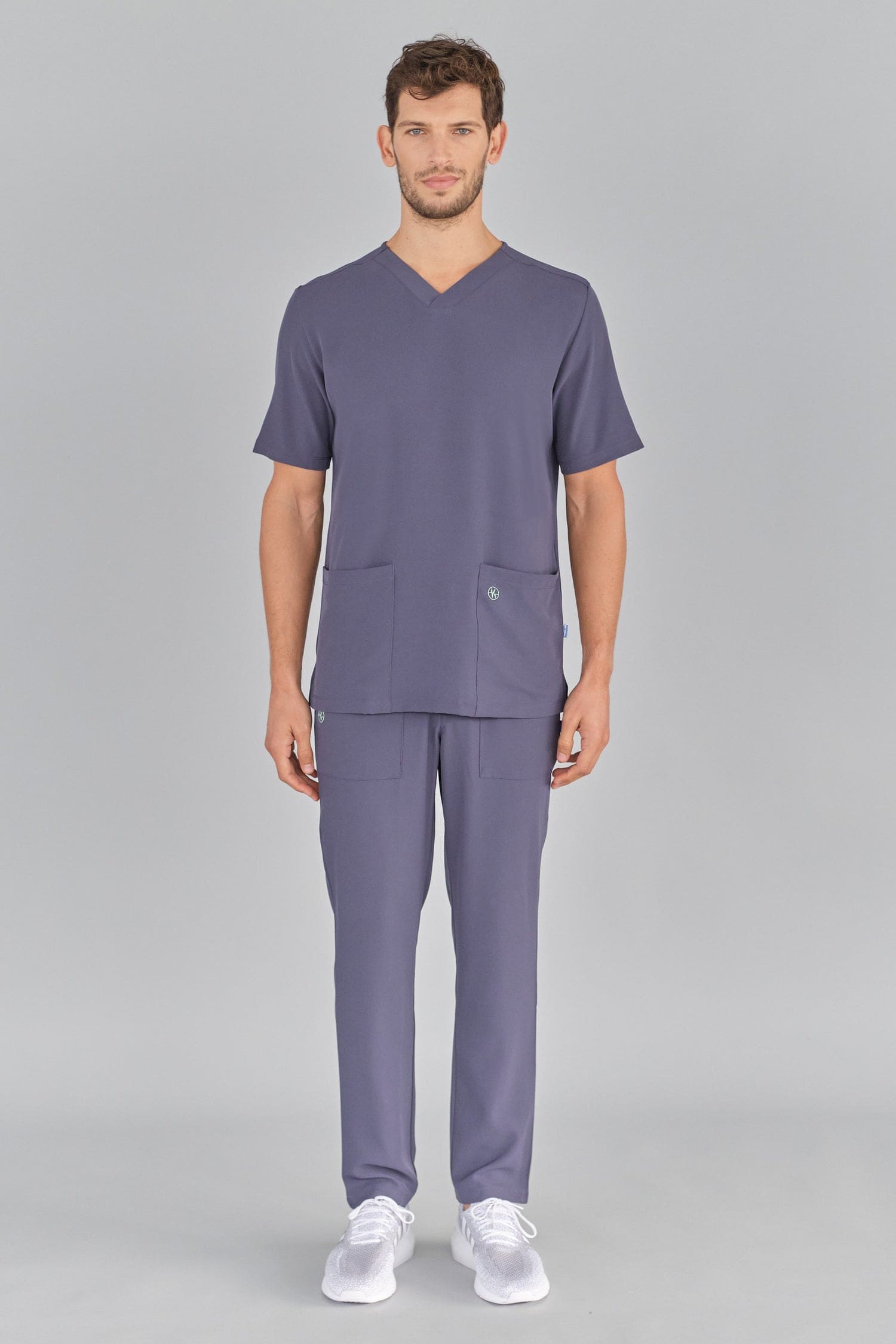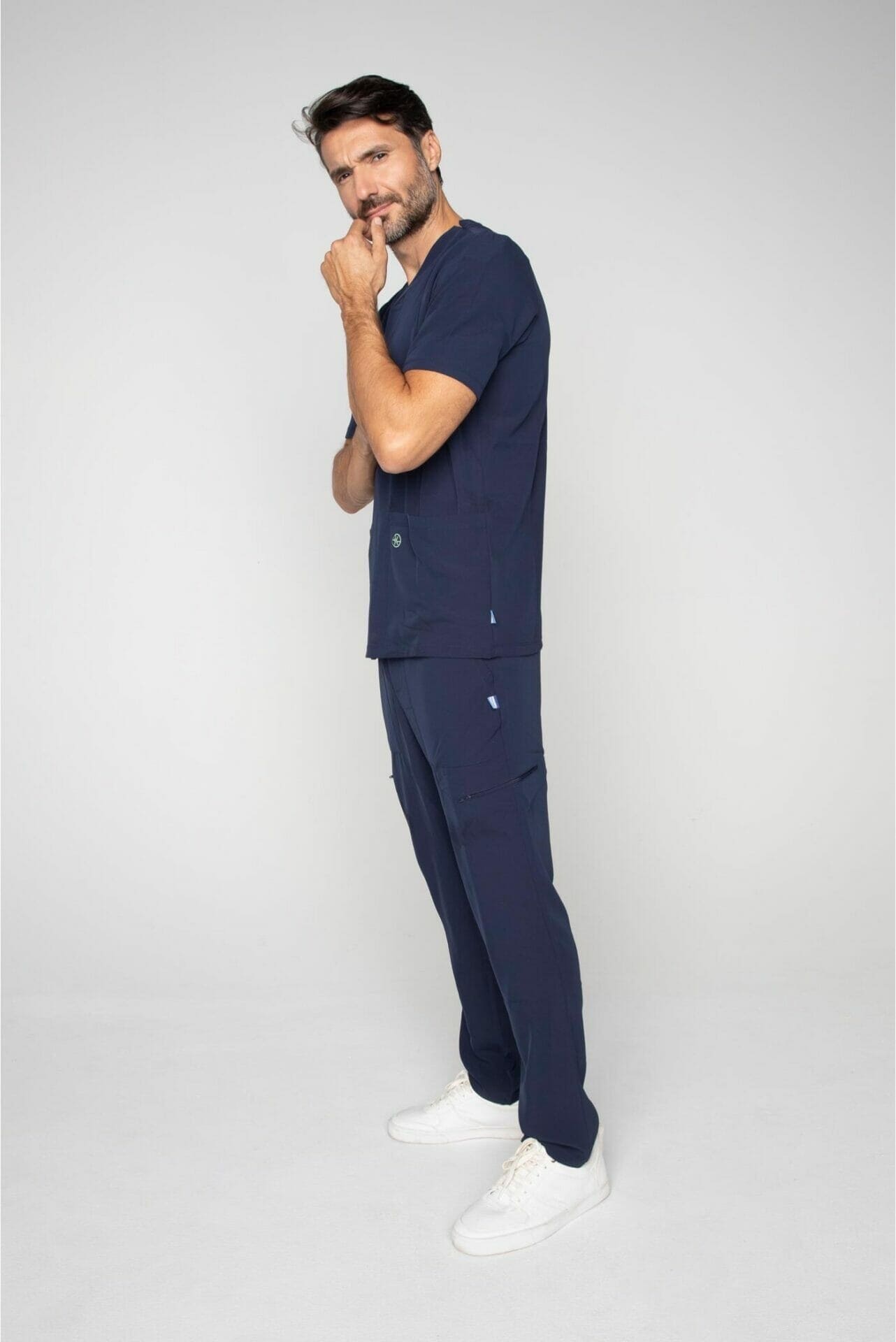 Kurzärmlige Herren-Tunika mit V-Ausschnitt aus innovativem 4-Wege-Stretch-Crêpe-Gewebe. Es ist unser Flaggschiff, das Komfort, Eleganz und Bewegungsfreiheit vereint. Der fließende, dehnbare und atmungsaktive Stoff garantiert maximalen Komfort.