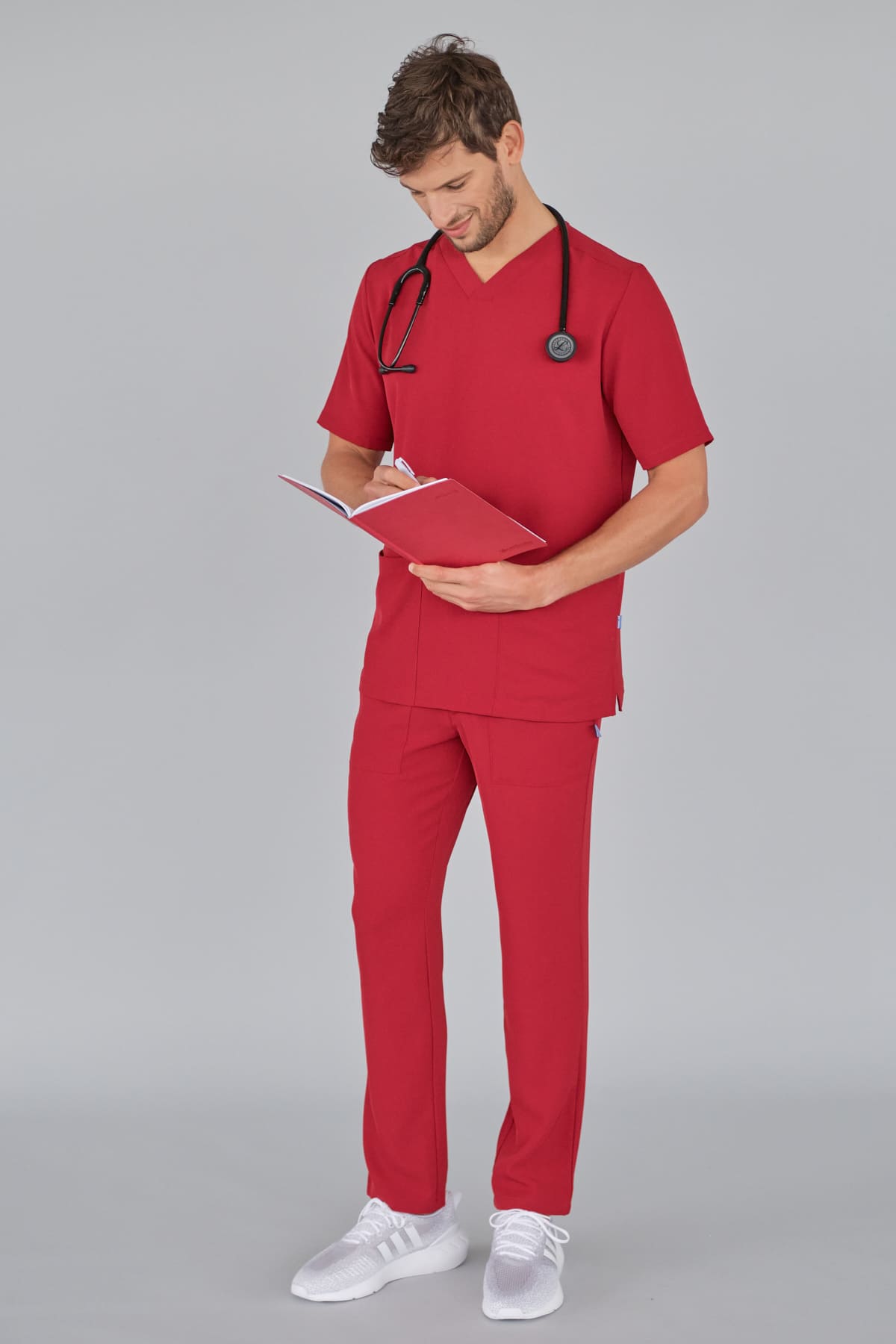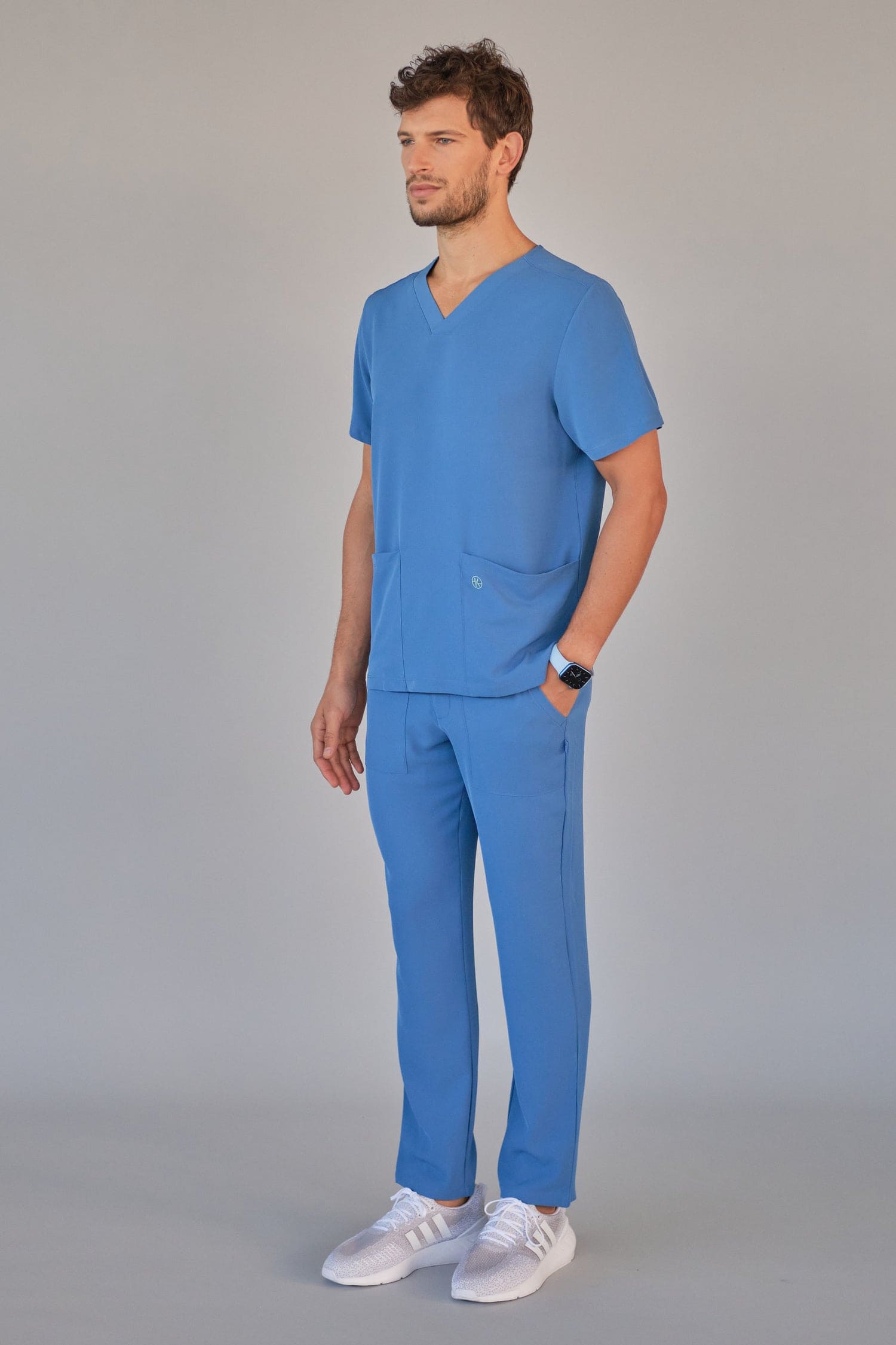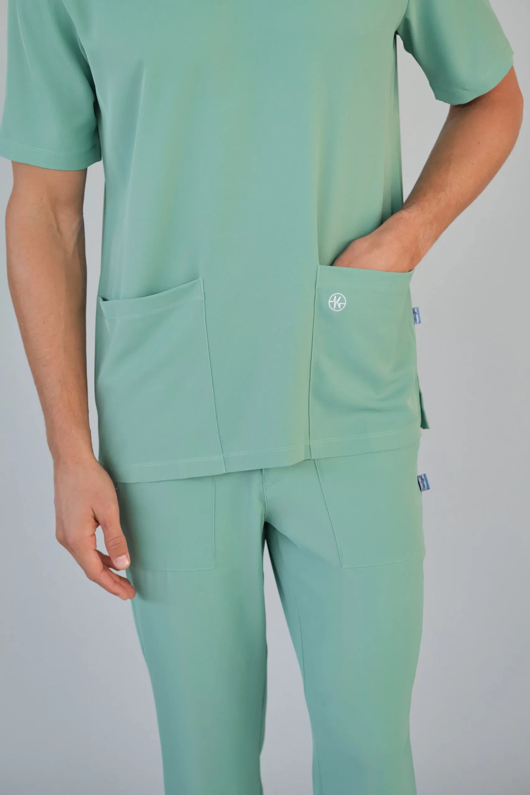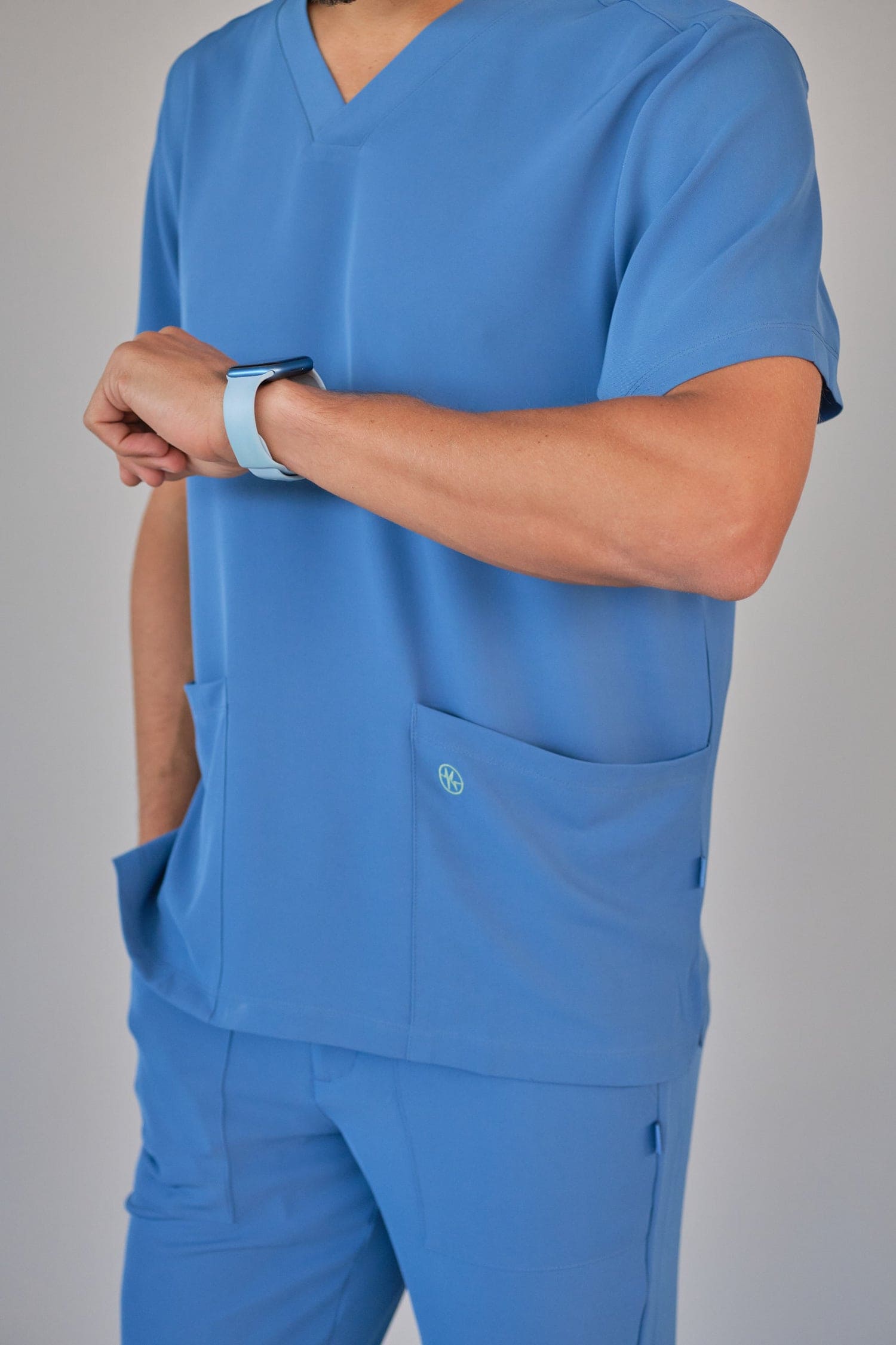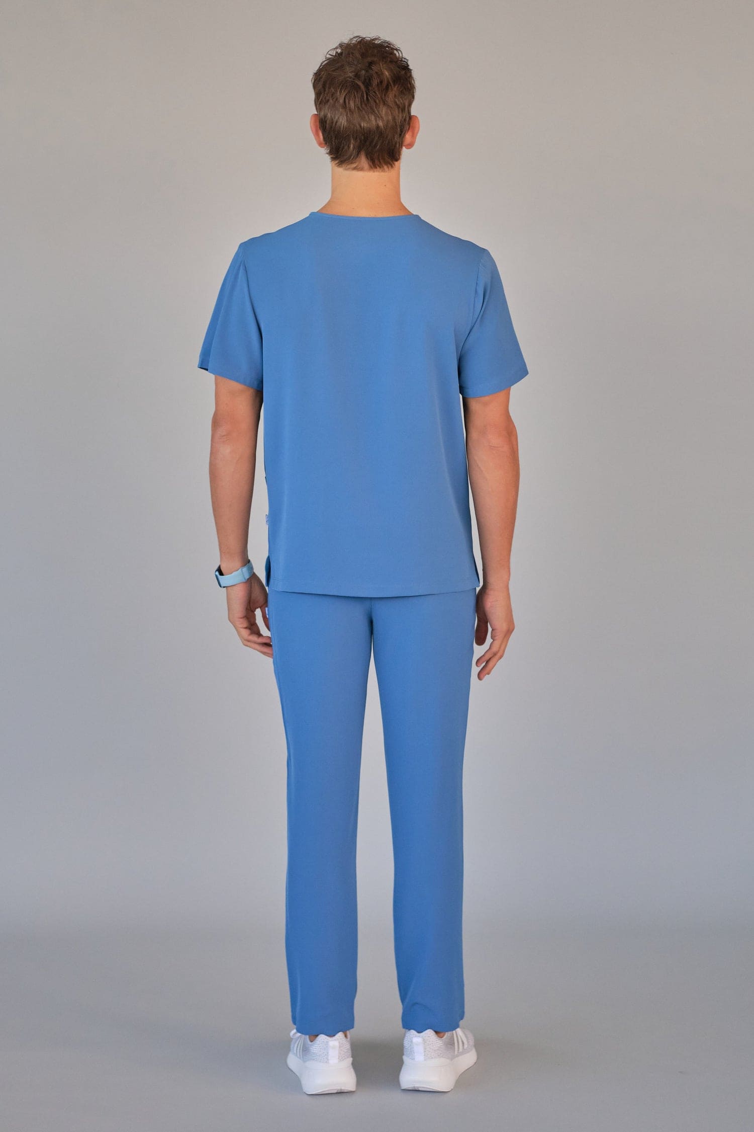 Kurzärmlige Herren-Tunika mit V-Ausschnitt aus innovativem 4-Wege-Stretch-Crêpe-Gewebe. Es ist unser Flaggschiff, das Komfort, Eleganz und Bewegungsfreiheit vereint. Der fließende, dehnbare und atmungsaktive Stoff garantiert maximalen Komfort.