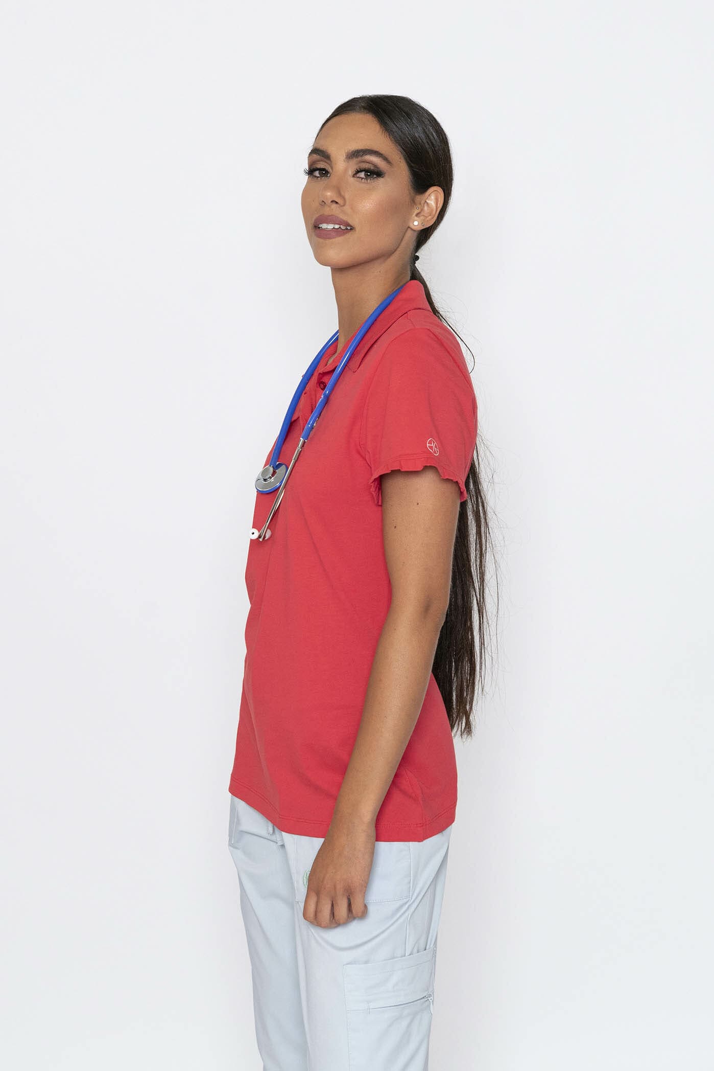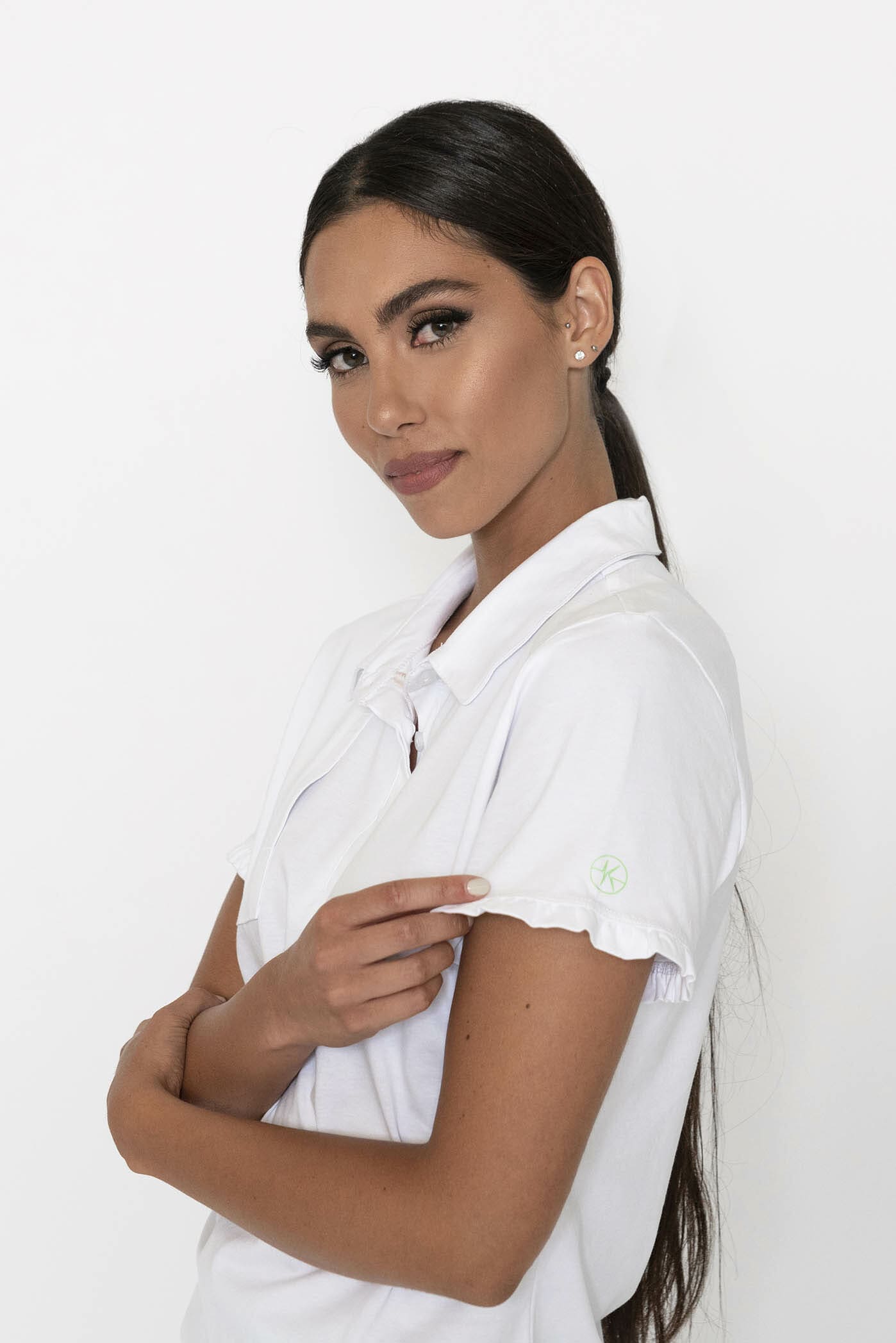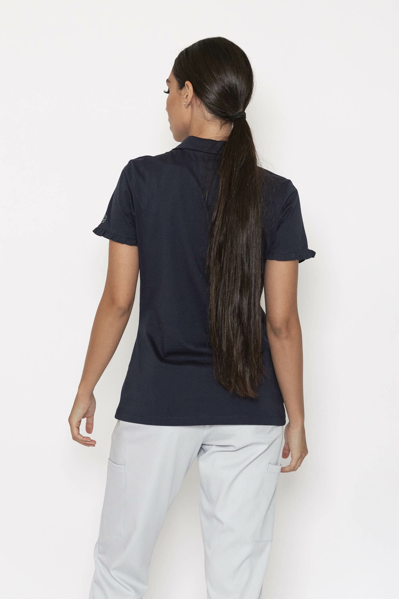 NOEMI – Damen-Poloshirt mit Tasche und Rüschen aus Baumwolljersey