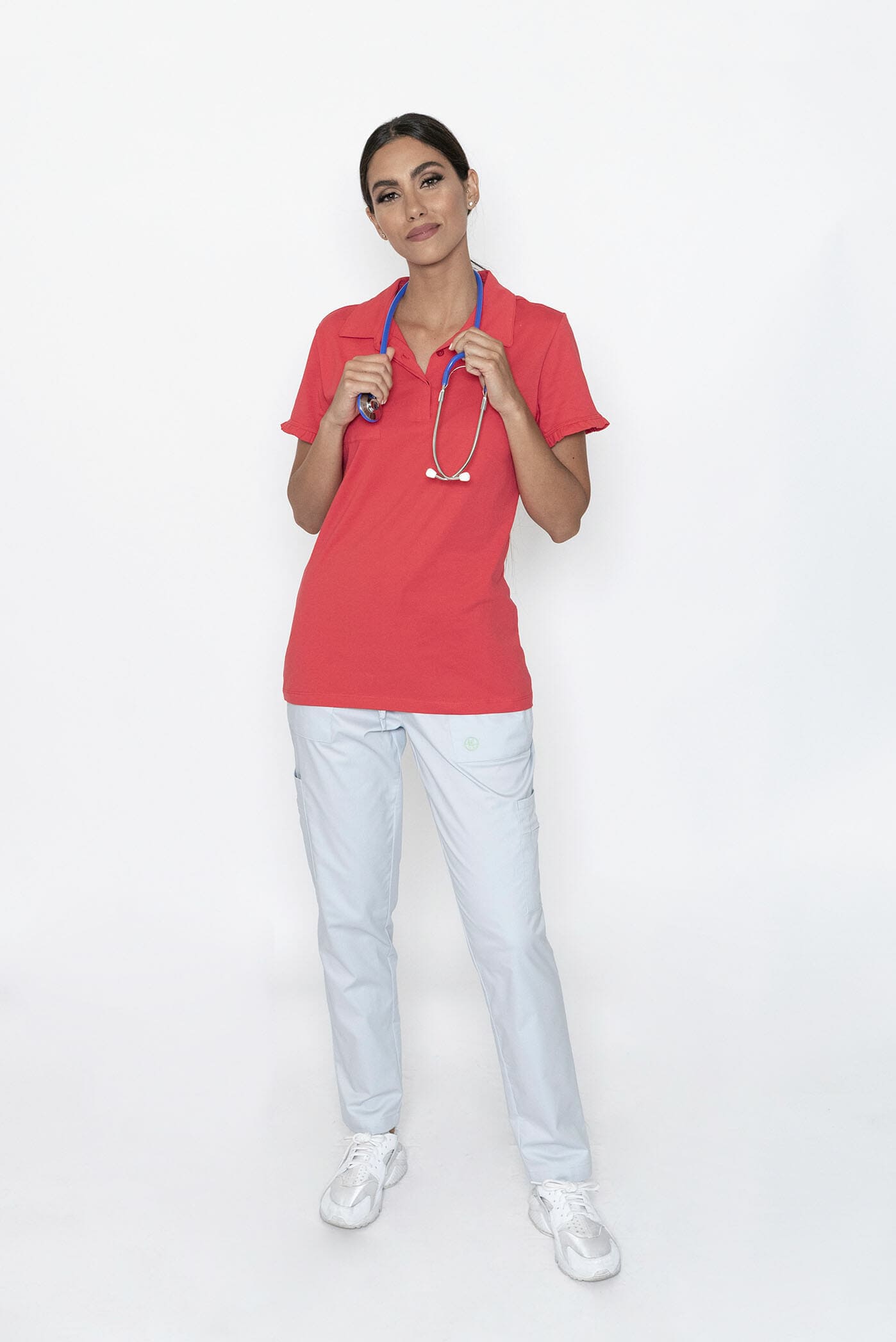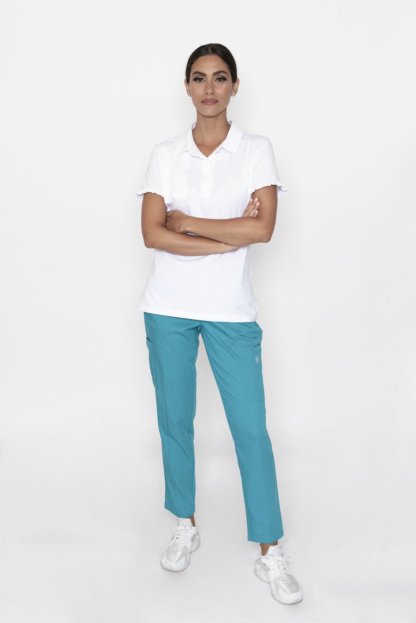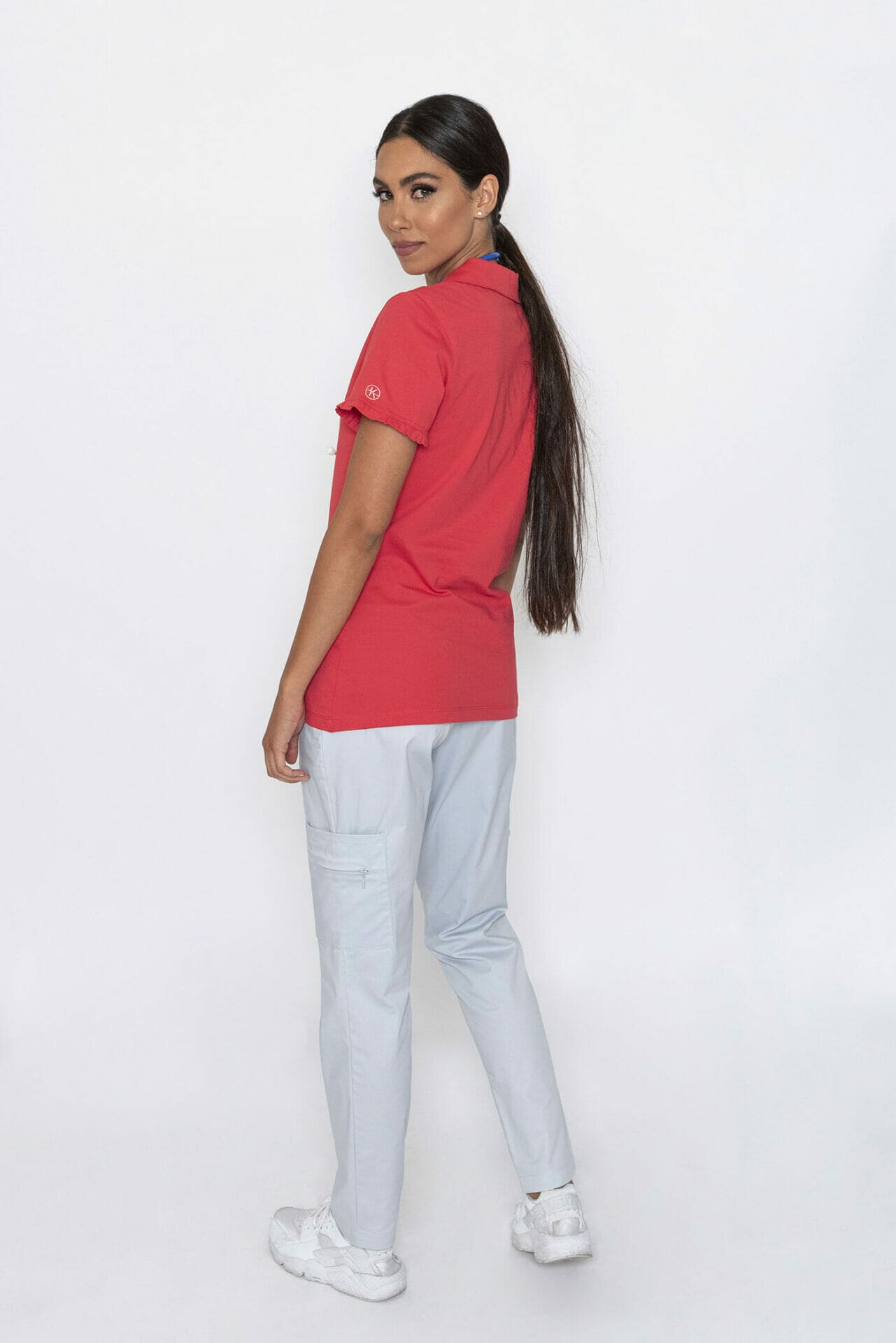 NOEMI – Damen-Poloshirt mit Tasche und Rüschen aus Baumwolljersey