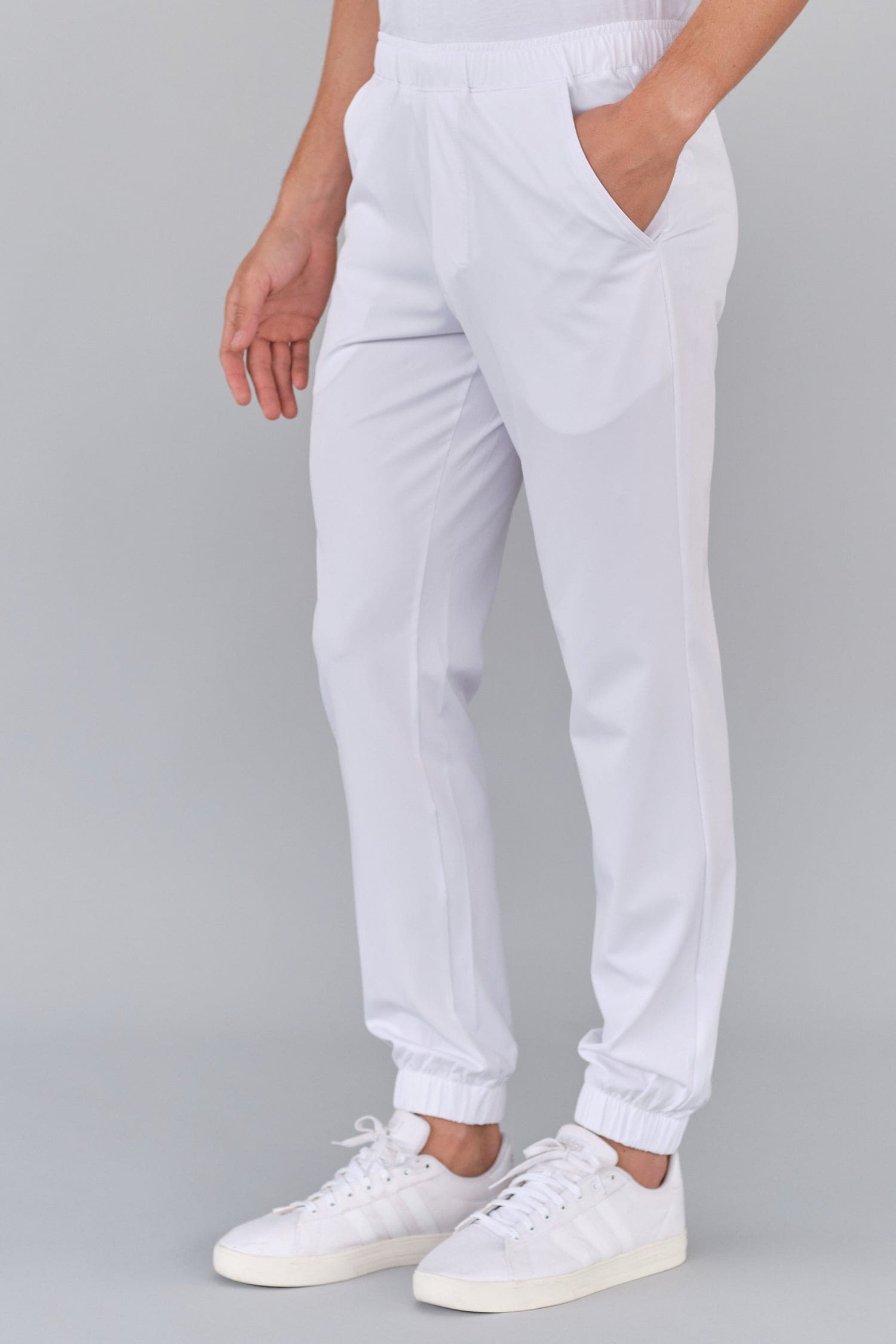 Herrenhosen im Jogger-Stil aus Mikrofasergewebe sind von einem sportlichen Look inspiriert und können wie ein Sportkleidungsstück getragen werden, während sie gleichzeitig für einen tadellosen und professionellen Auftritt sorgen. Sie sind die perfekte Wahl für alle intensiven und arbeitsreichen Tage. Der weiche und elastische Stoff garantiert Bewegungsfreiheit und ein angenehmes Tragegefühl, während die Teflon®-Behandlung für wasserabweisenden und schmutzabweisenden Schutz sorgt