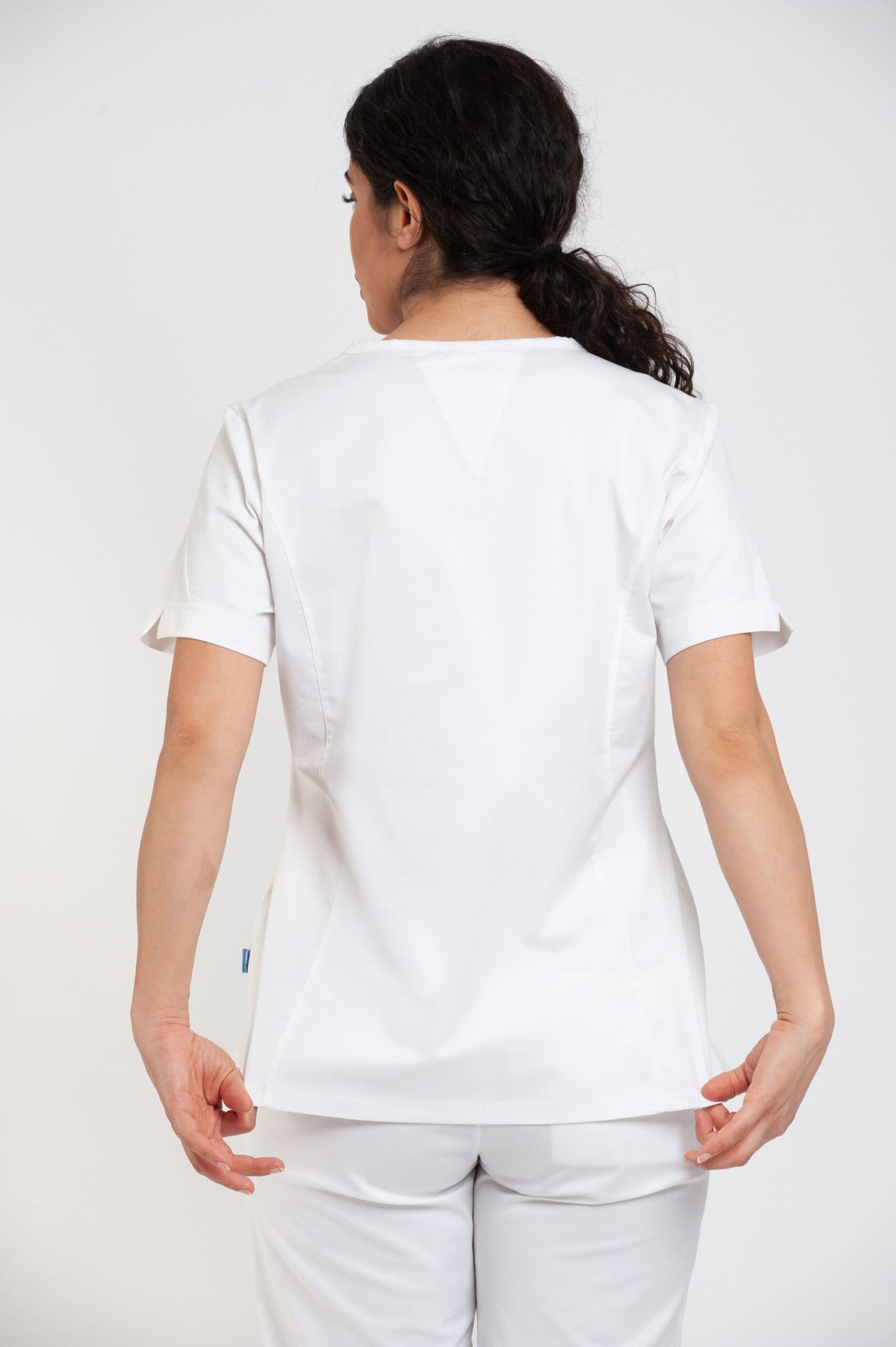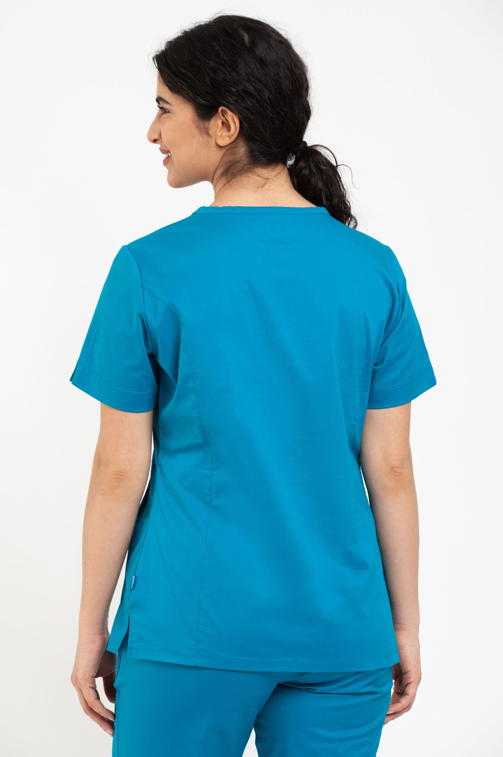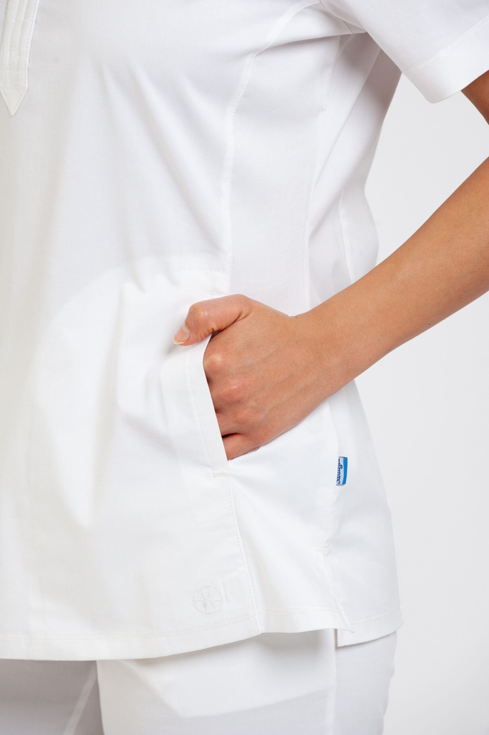 Kurzärmlige Damen-Tunika aus hochwertigem Baumwoll-Stretch-Mischgewebe, extrem frisch, langlebig und atmungsaktiv. Kombiniert femininen Stil mit extremem Komfort. Verfügt über ein einzigartiges Y-förmiges Ausschnittdesign mit Dreifachnähten