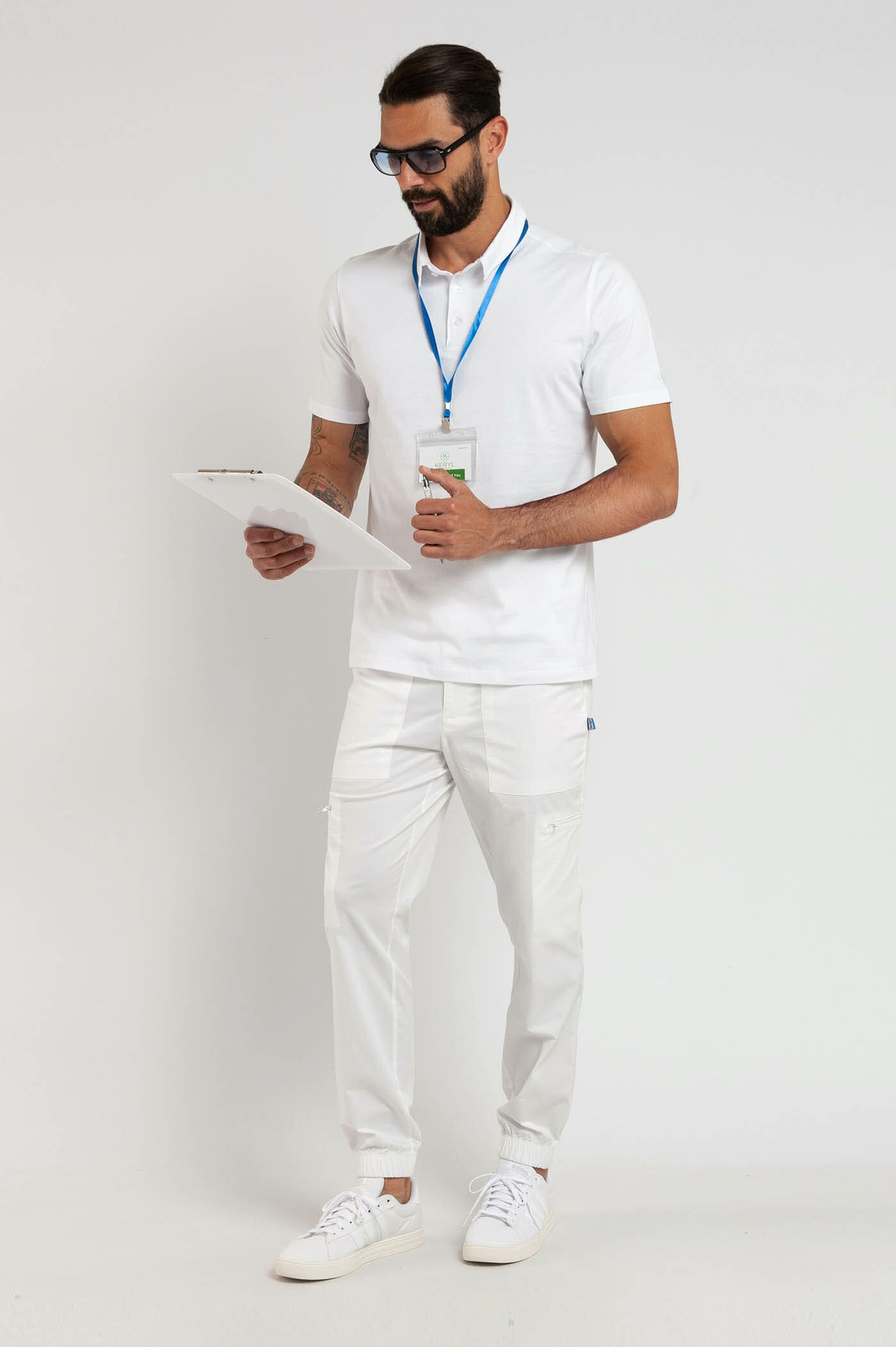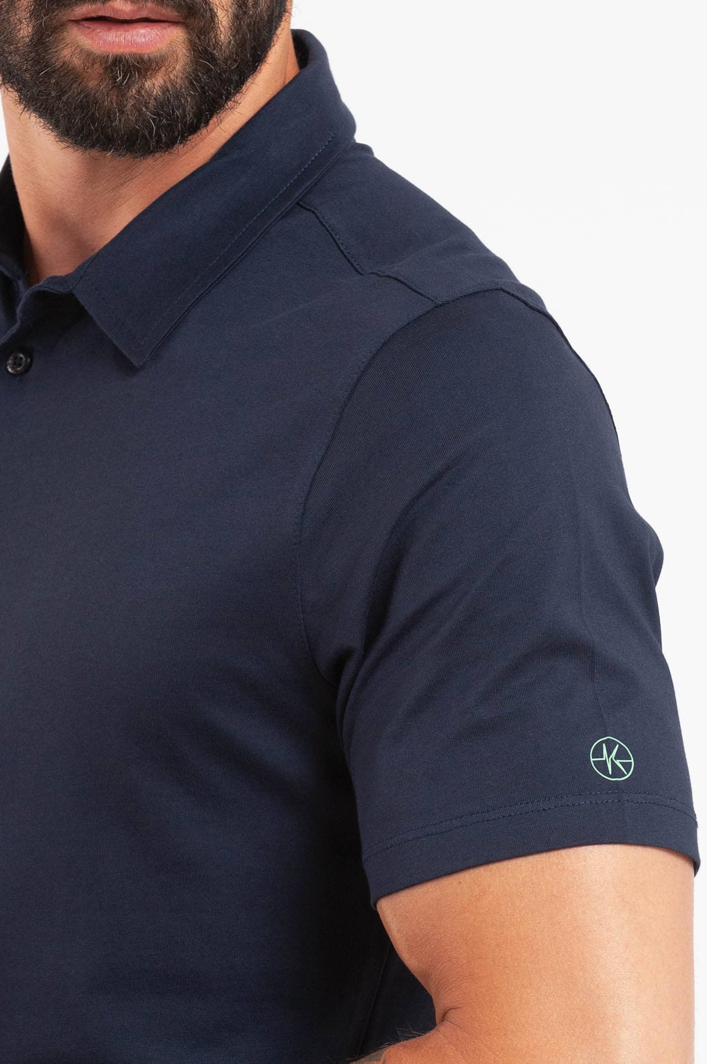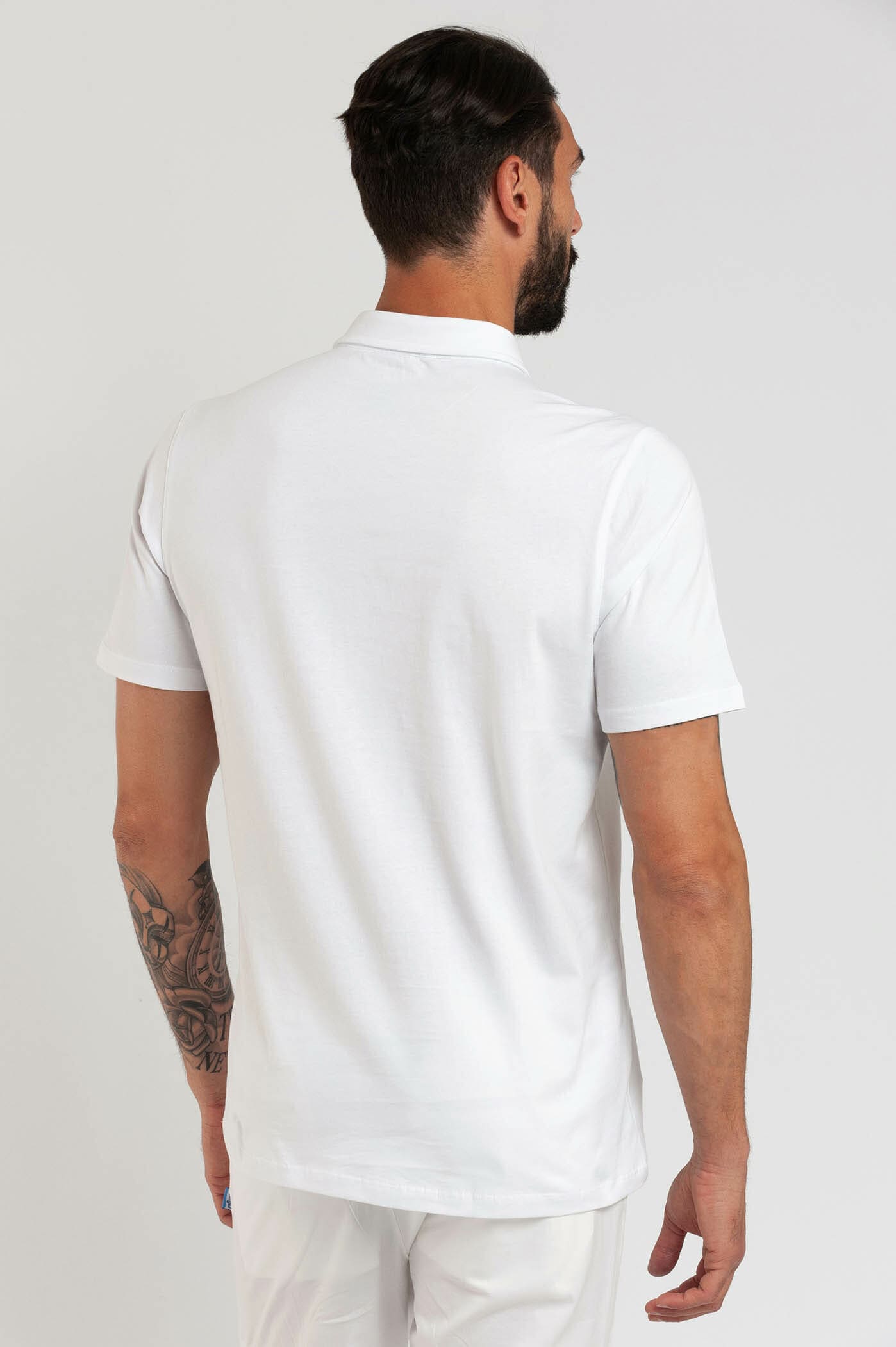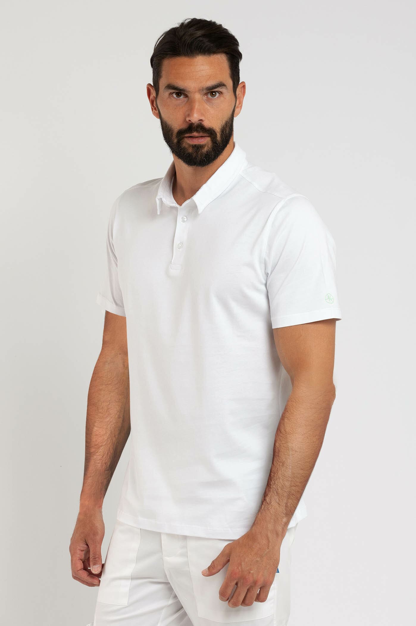 Kurzärmliges Herren-Poloshirt mit 3-Knopf-Verschluss und kleinem Logo-Druck auf dem Ärmel. Kann allein oder in Kombination mit einer Uniform getragen werden und bietet Komfort und einen modernen Look