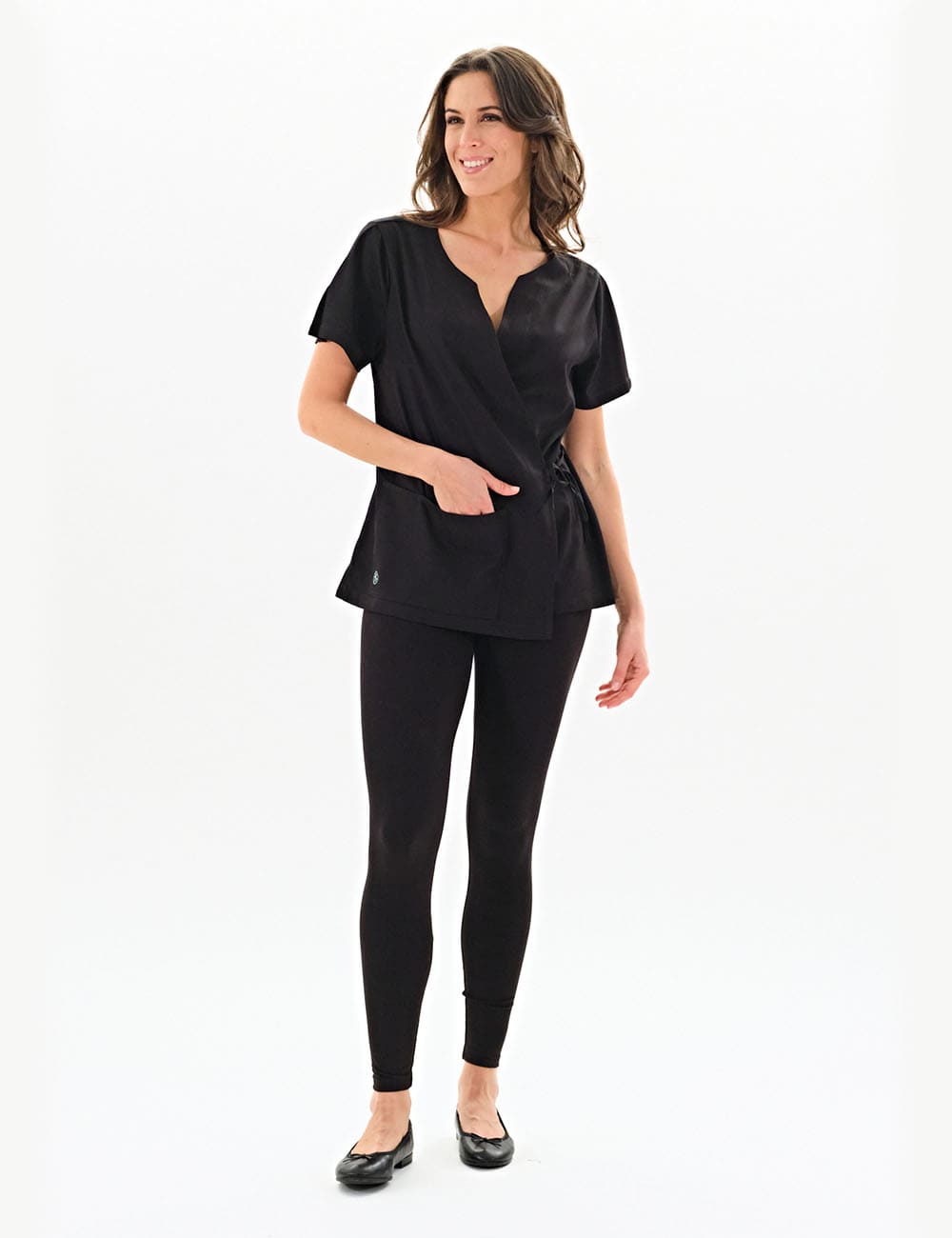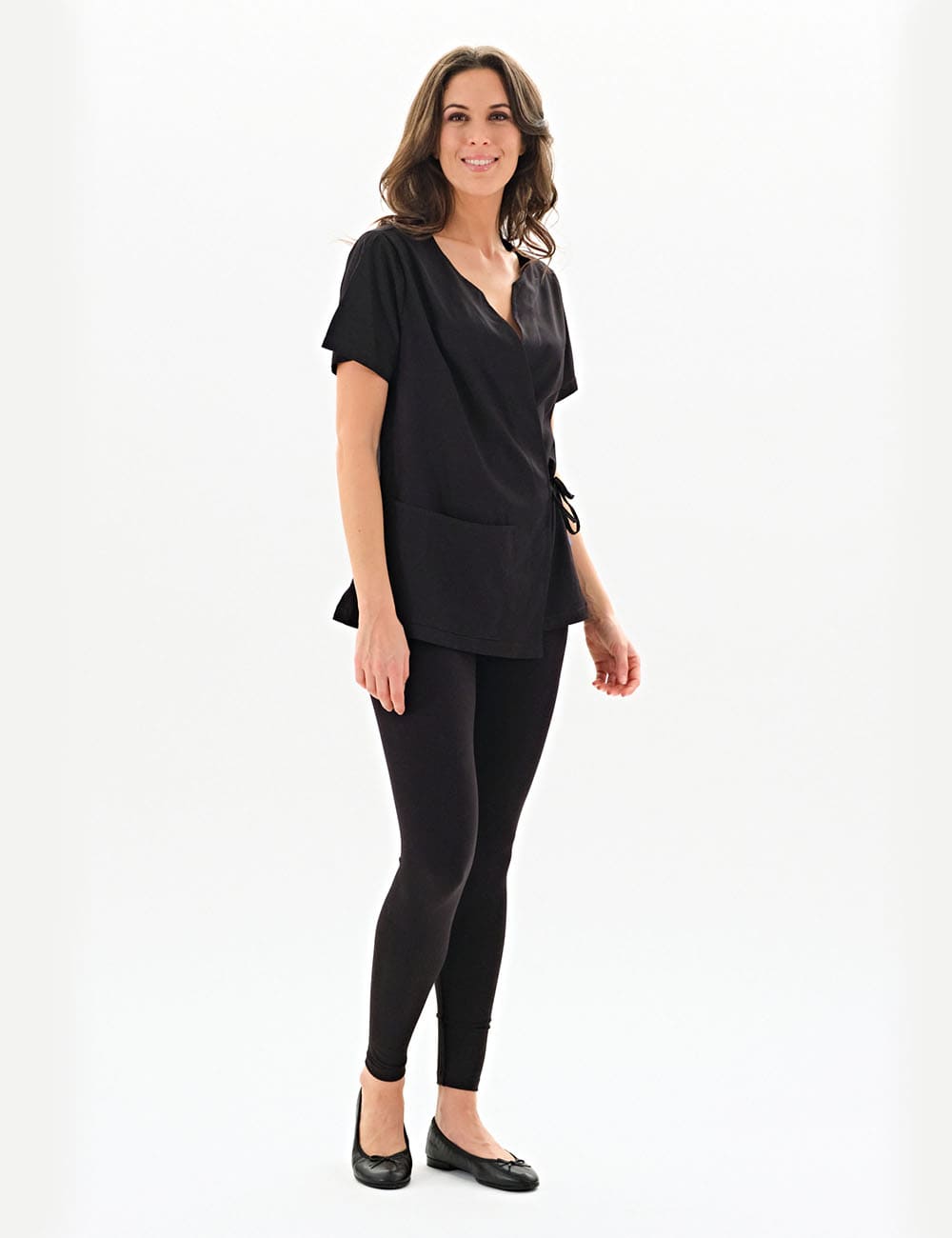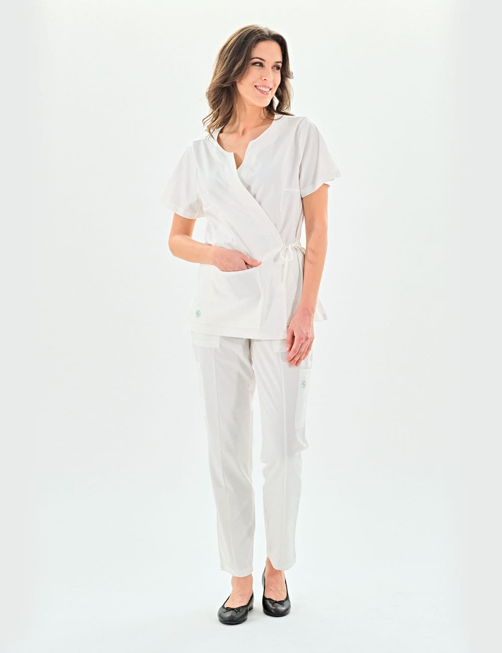 Der kurze Kimono aus weichem und leichtem Twill-Stoff ist ein unverzichtbares und vielseitiges Arbeitskleidungsstück, das dank seines großen Volumens extreme Bewegungsfreiheit bietet. Die Passform ist dank der innen und außen verstellbaren Schnürsenkel individuell anpassbar und die doppelte aufgesetzte Tasche auf der Vorderseite bietet ausreichend Platz für Arbeitsutensilien