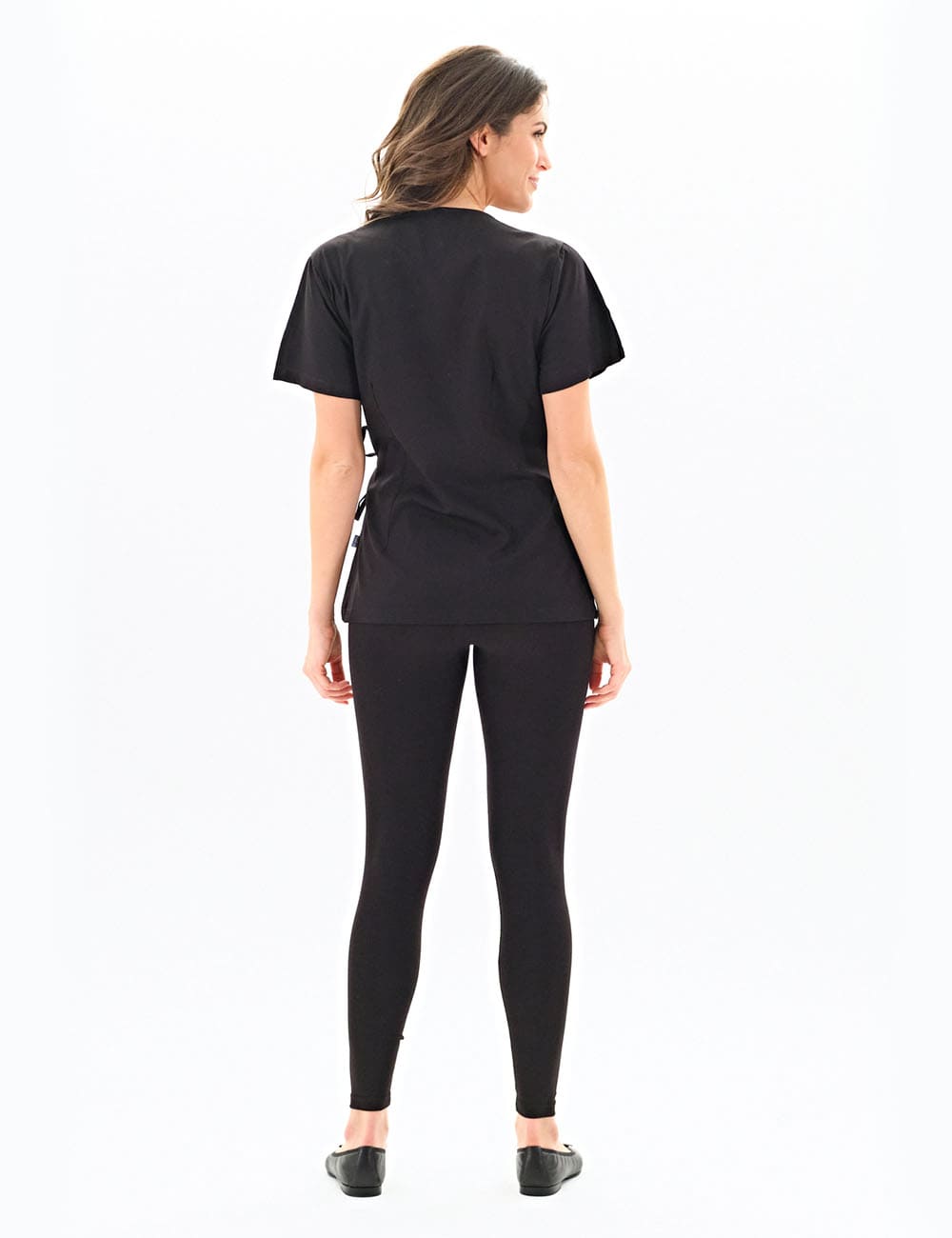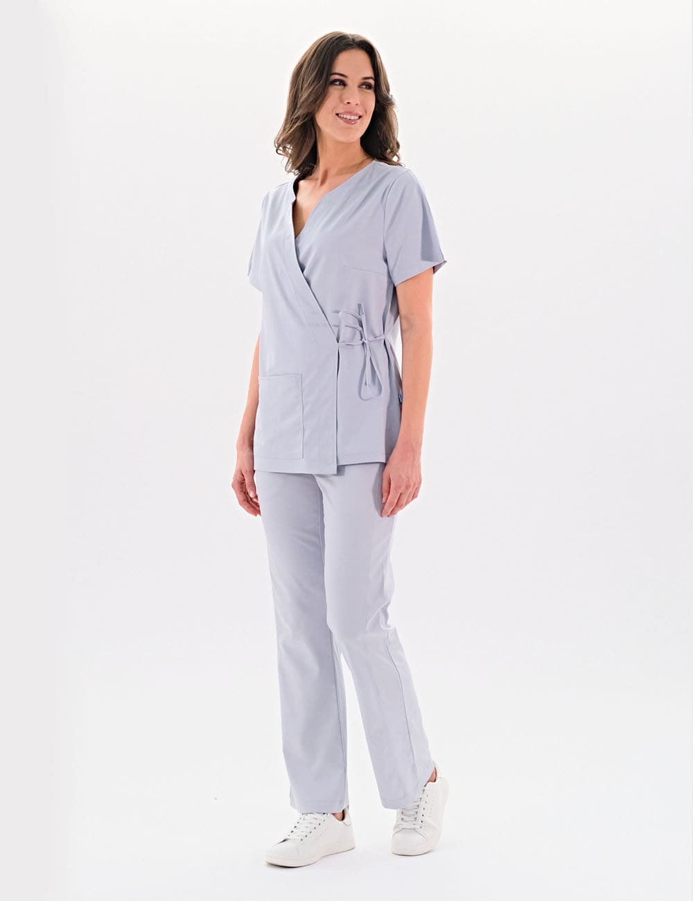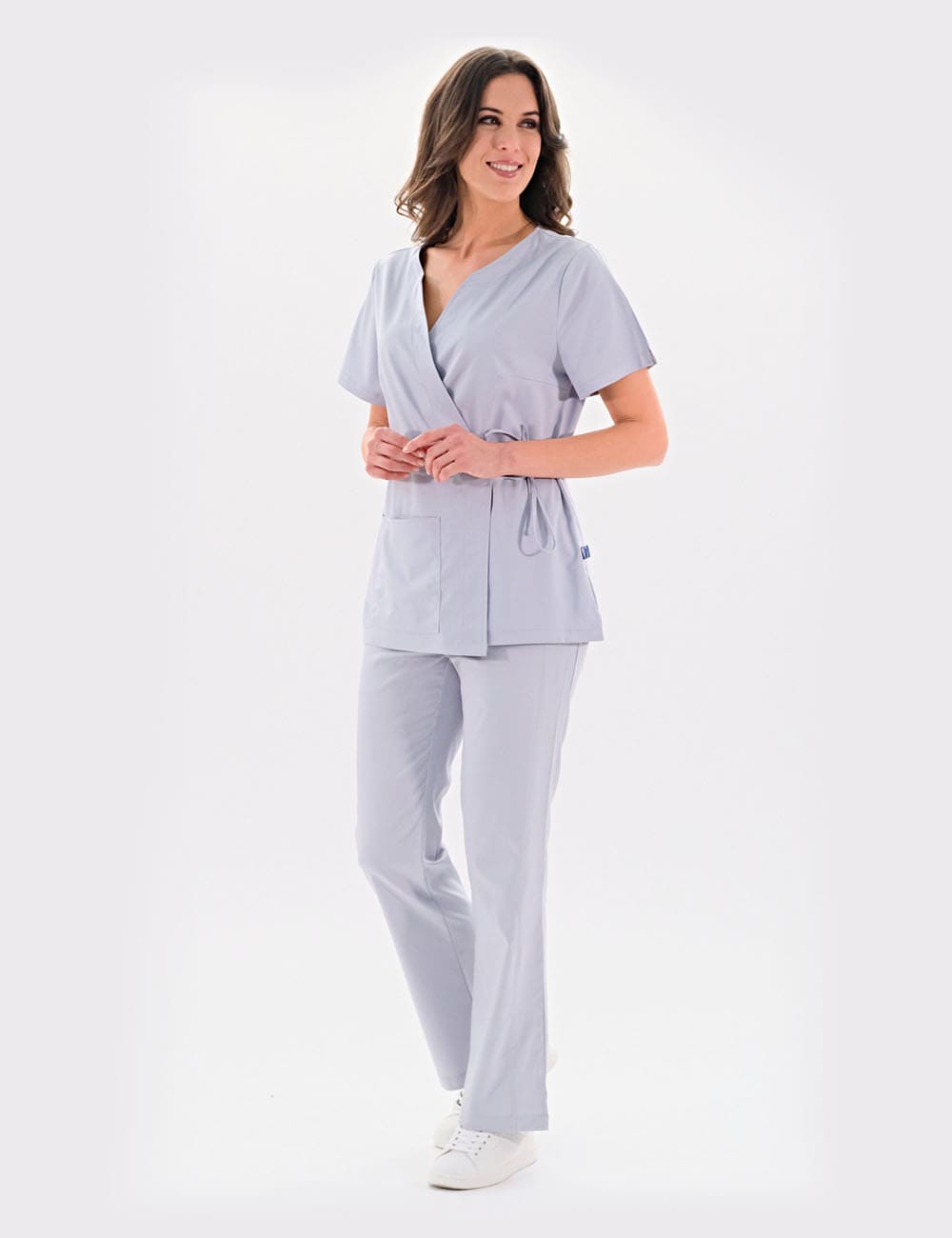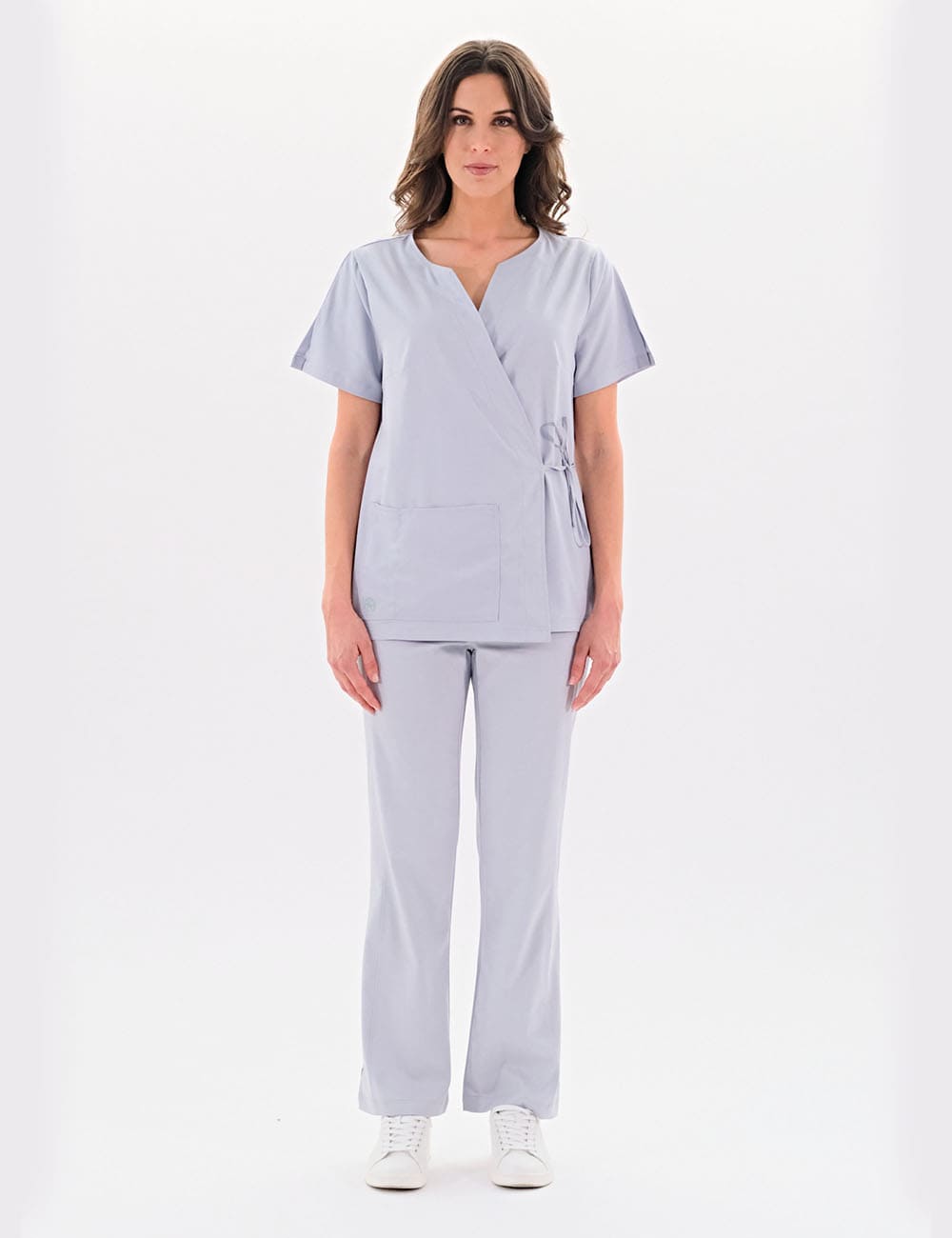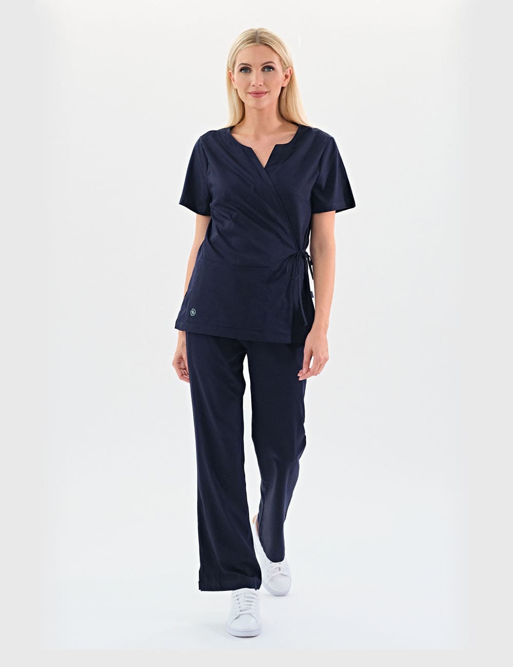 Überkreuzte Öffnung vorne mit verstellbaren Schnürsenkeln zum Binden in der Taille